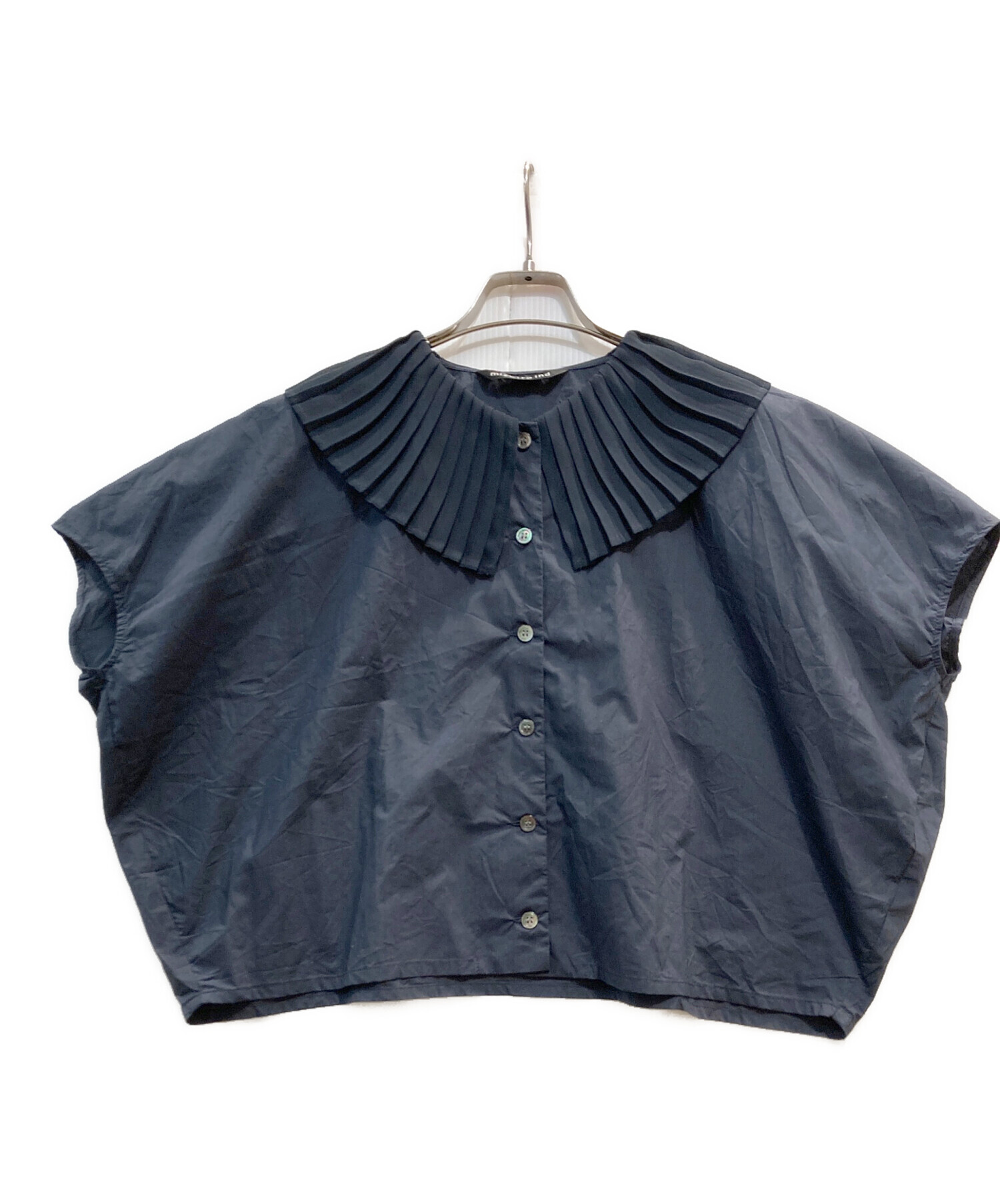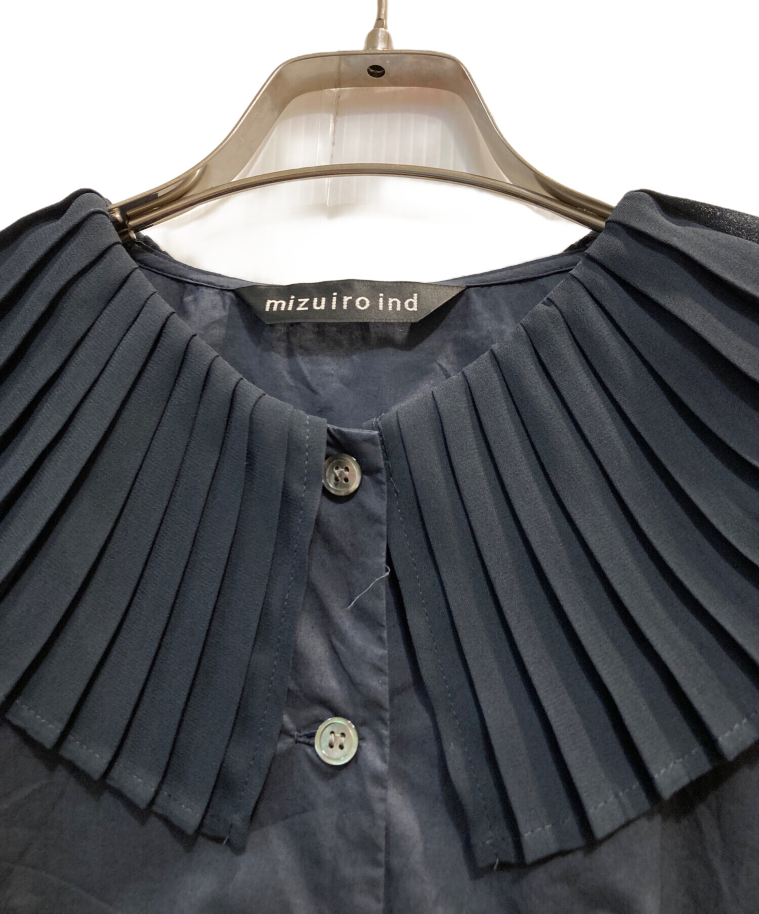 • mizuiro-ind(ミズイロインド)mizuiro-ind (ミズイロインド) プリーツカラーシャツ ネイビー サイズ:ーの古着・服飾アイテム 糸ほつれ有