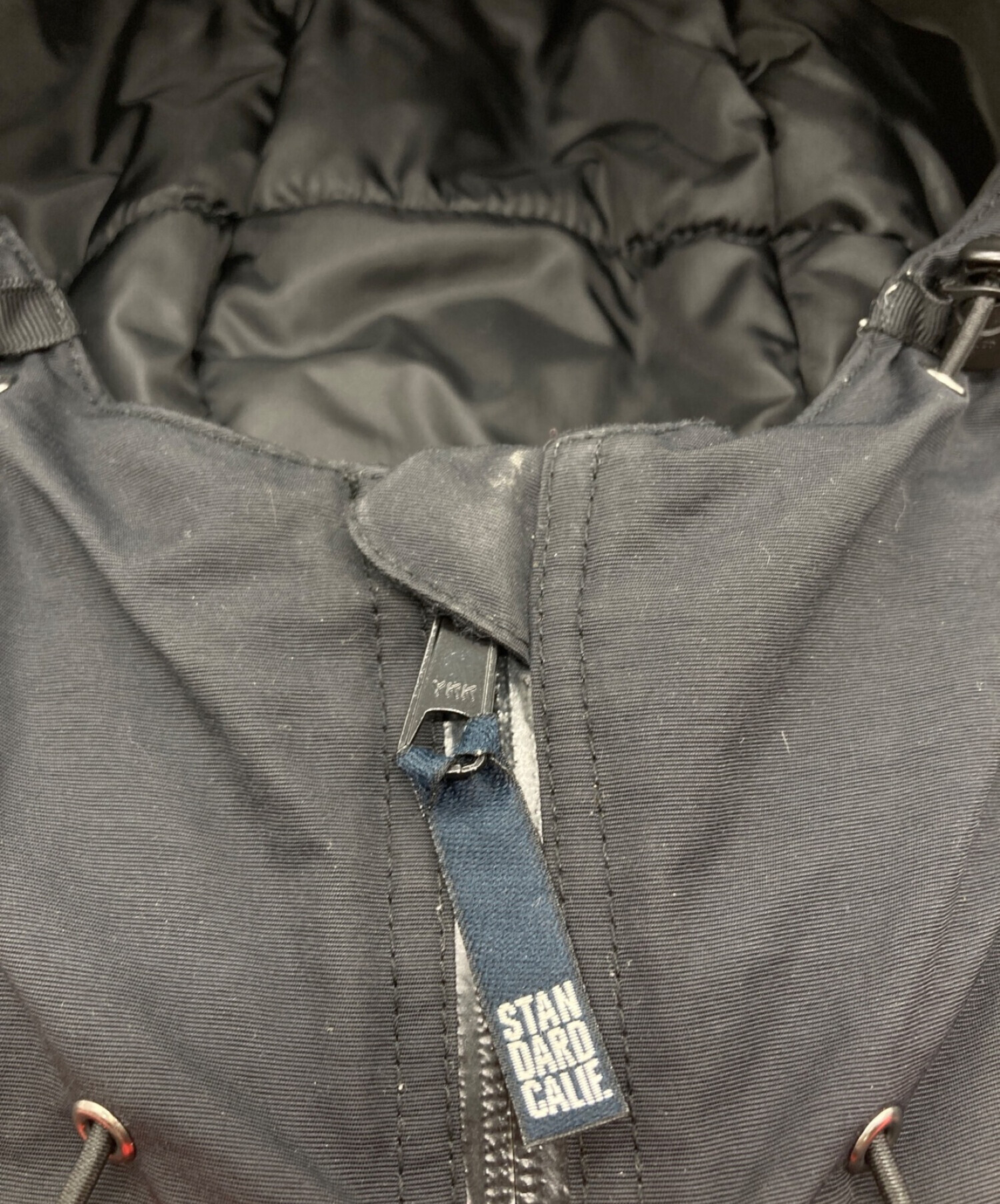 • STANDARD CALIFORNIA(スタンダードカリフォルニア)STANDARD CALIFORNIA (スタンダードカリフォルニア) PUFF HOOD COAT レッド×ブラック サイズ:Lの古着・服飾アイテム 首元スレ