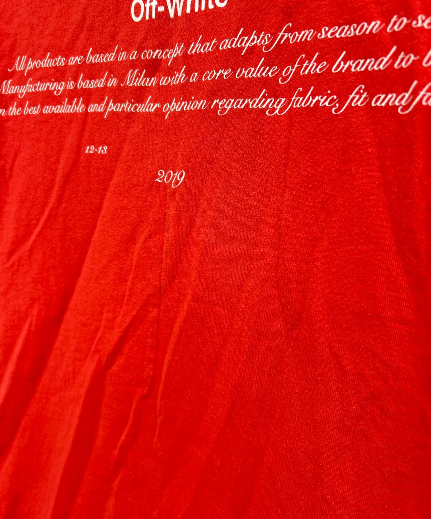 • OFFWHITE(オフホワイト)OFFWHITE (オフホワイト) BERNINI S/S SPLICED TEE レッド サイズ:XLの古着・服飾アイテム プリント割れ