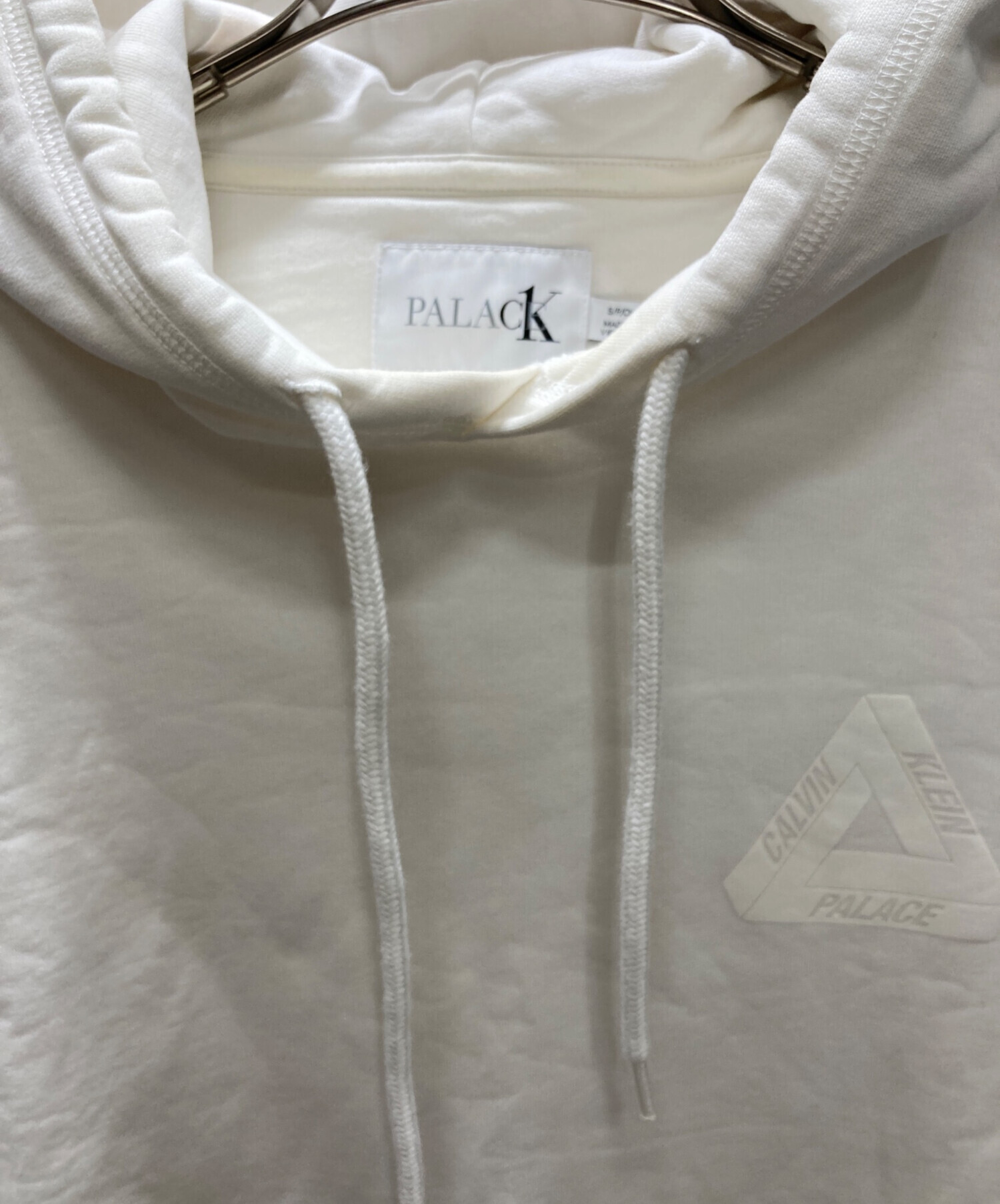 • PALACE(パレス)PALACE (パレス) Calvin Klein (カルバンクライン) プルオーバーパーカー ホワイト サイズ:Sの古着・服飾アイテム フロントヨゴレ