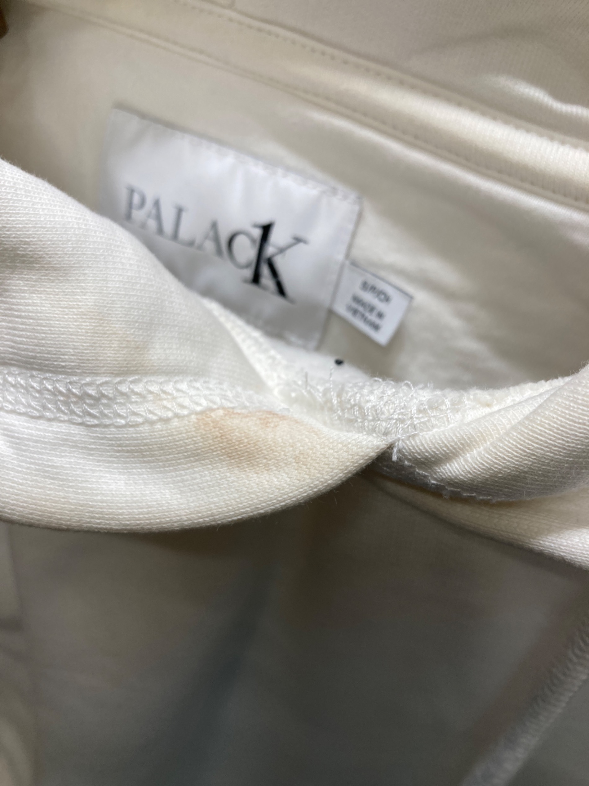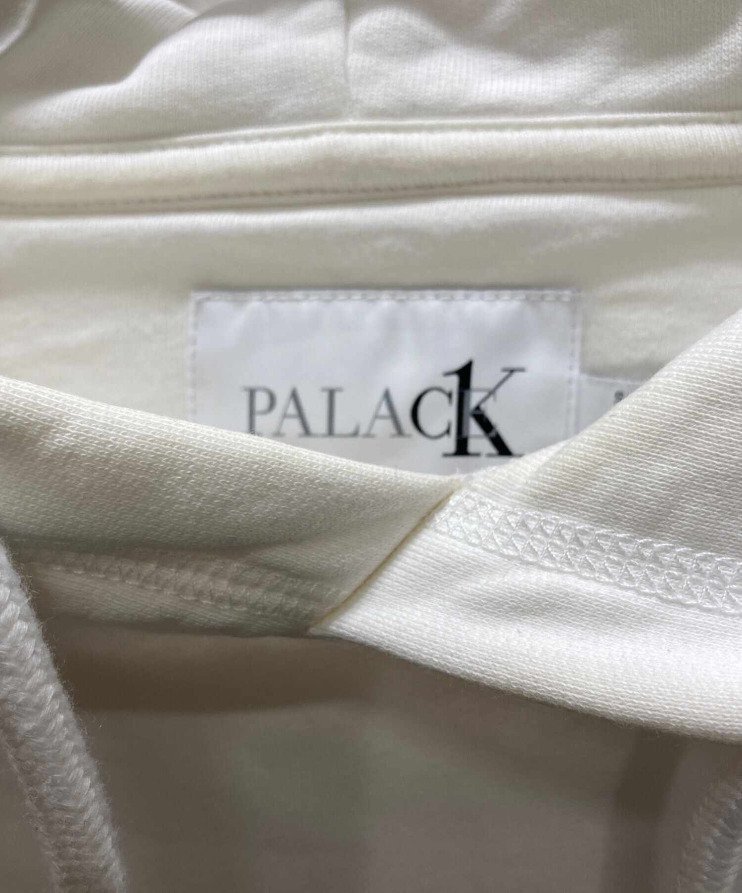 • PALACE(パレス)PALACE (パレス) Calvin Klein (カルバンクライン) プルオーバーパーカー ホワイト サイズ:Sの古着・服飾アイテム 首元ヨゴレ