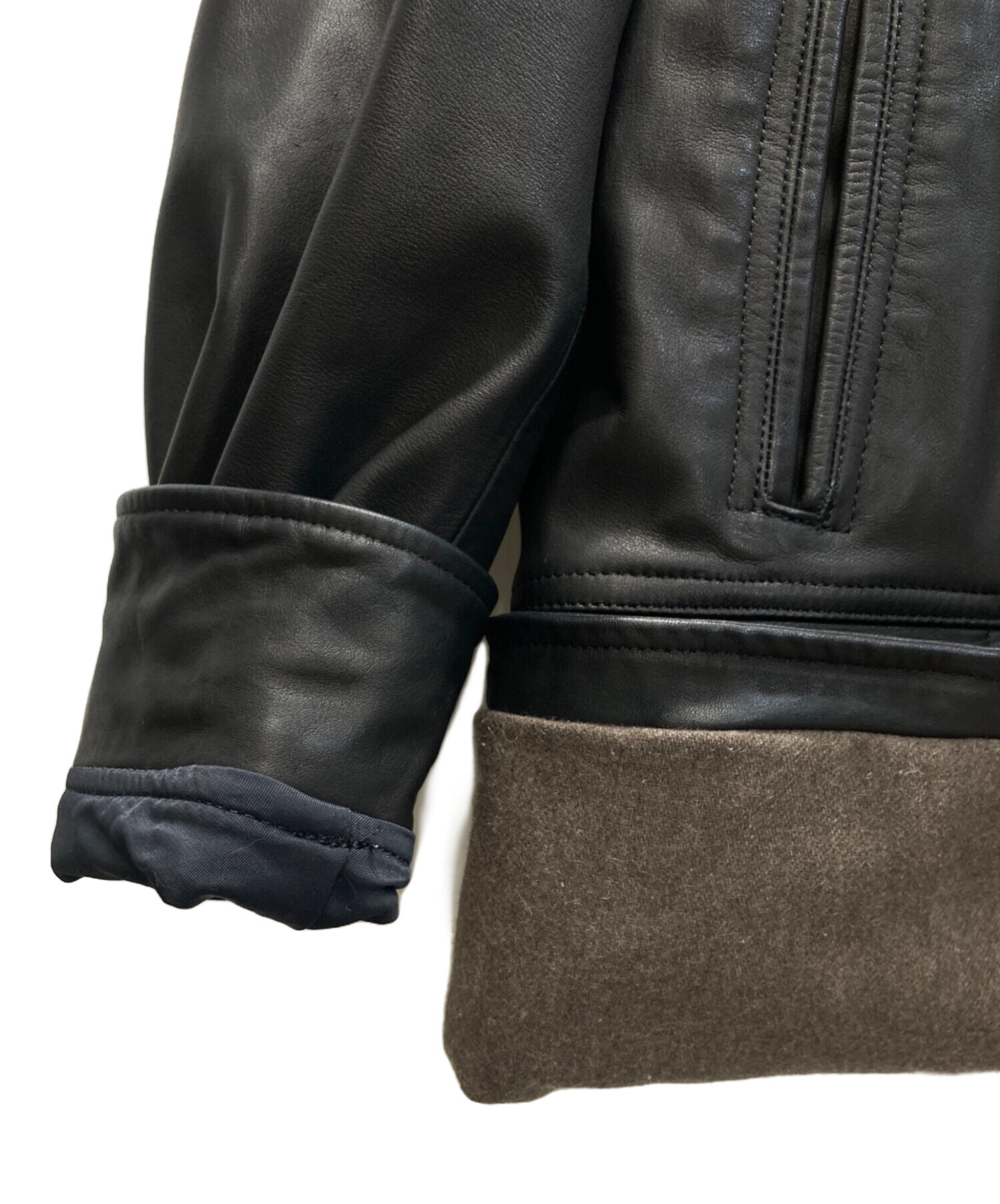 | 素材 | 牛革 裏地・フラップ裏: 毛 90% ナイロン 10% 袖裏・ポケット袋布: ナイロン 100% ハンドウォーマーポケット: ポリエステル 65% レーヨン 35% |