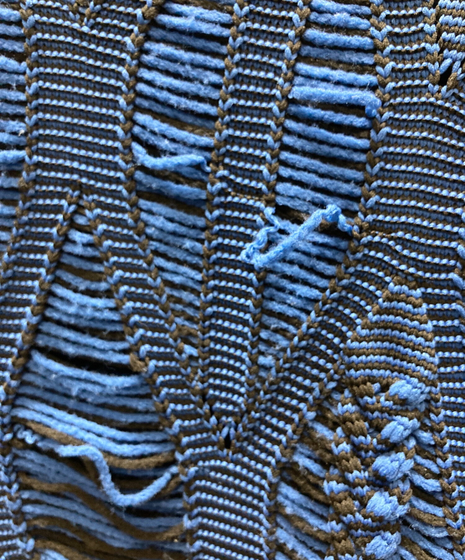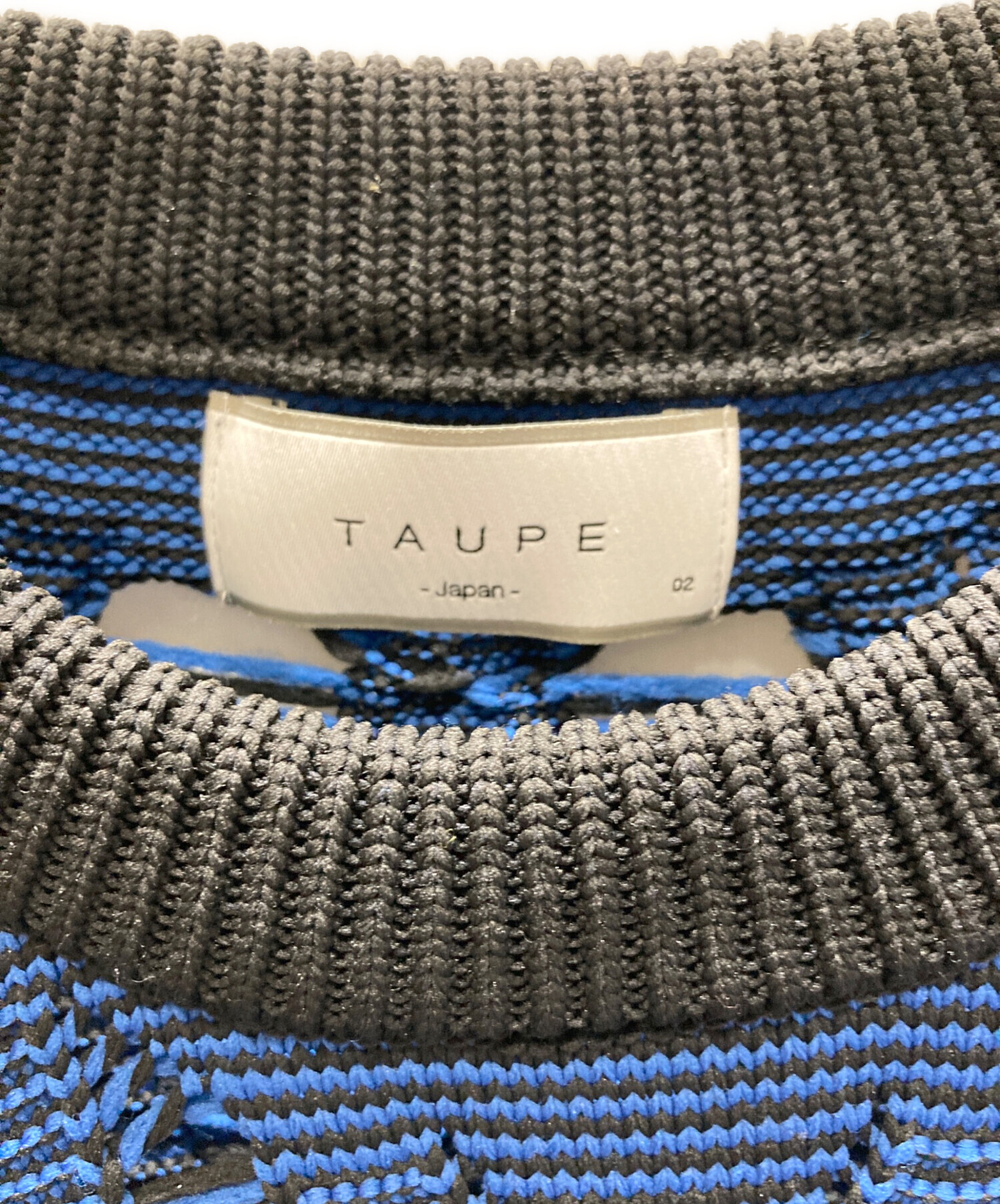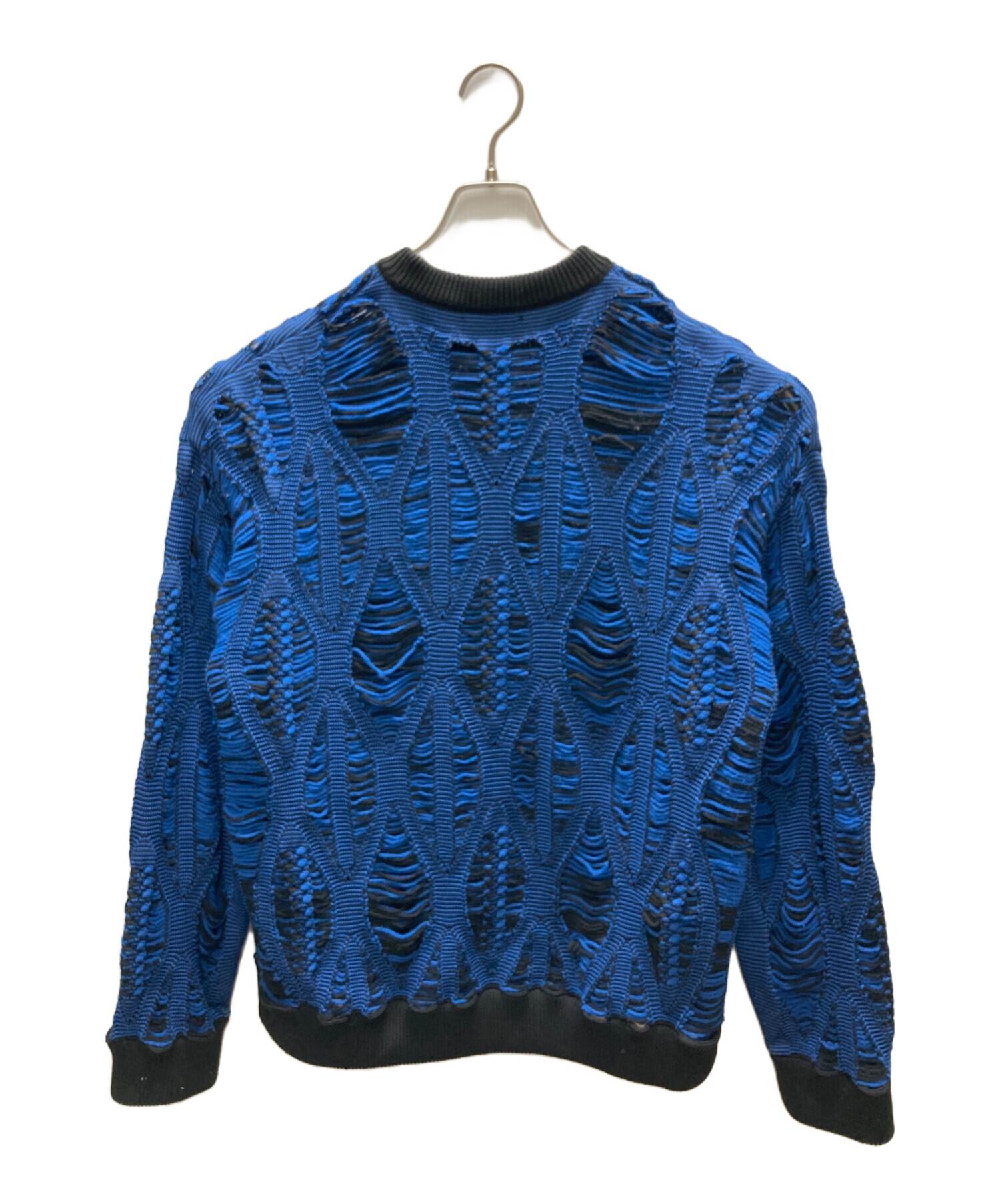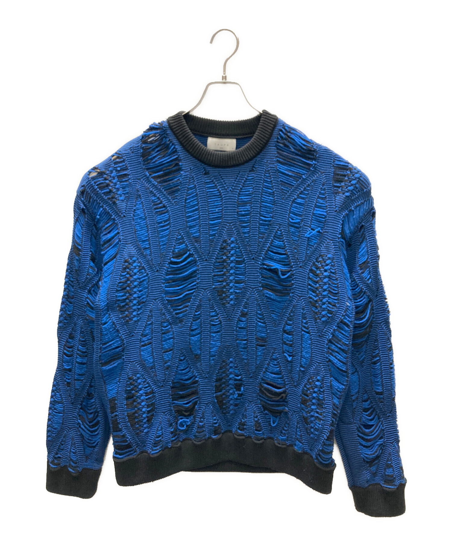 • taupe(トープ)taupe (トープ) LACE ARAN CREW-NECK KNIT ブルー サイズ:SIZE 2の古着・服飾アイテム 胸部 ほつれ