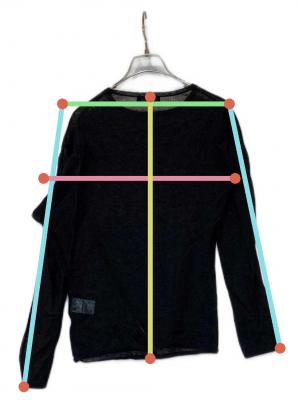 当サイトでは商品の表記サイズの他に、出品商品を採寸しサイズを記載しております。また、実際のアイテム画像を使用した計測とイラストを使用した計測の2パターンがございます。