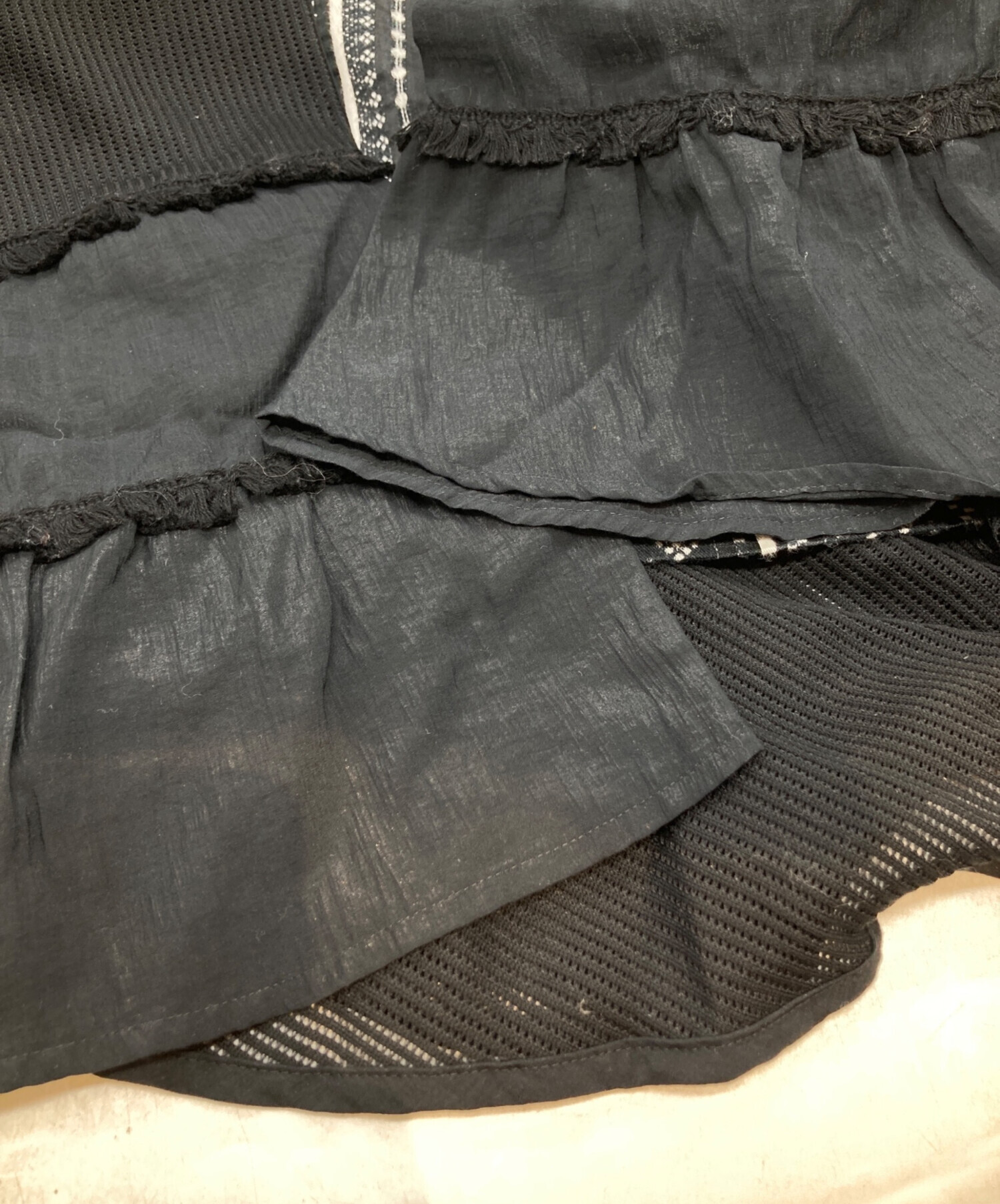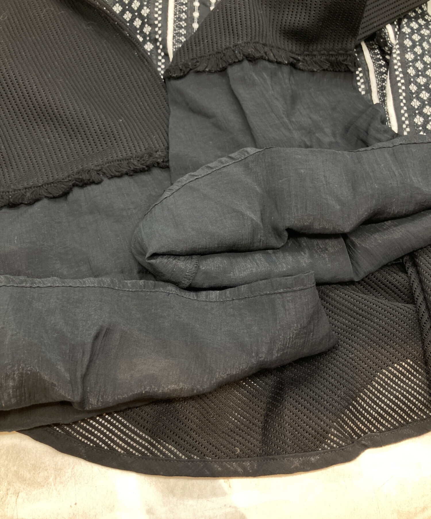 | 素材 | 本体 柄部分 綿 82% ナイロン 9% ポリエステル 9% メッシュ部分 綿 75% ポリエステル 25% ワッシャー部分 レーヨン 62% ナイロン 38% フリンジ部分 綿 100% |