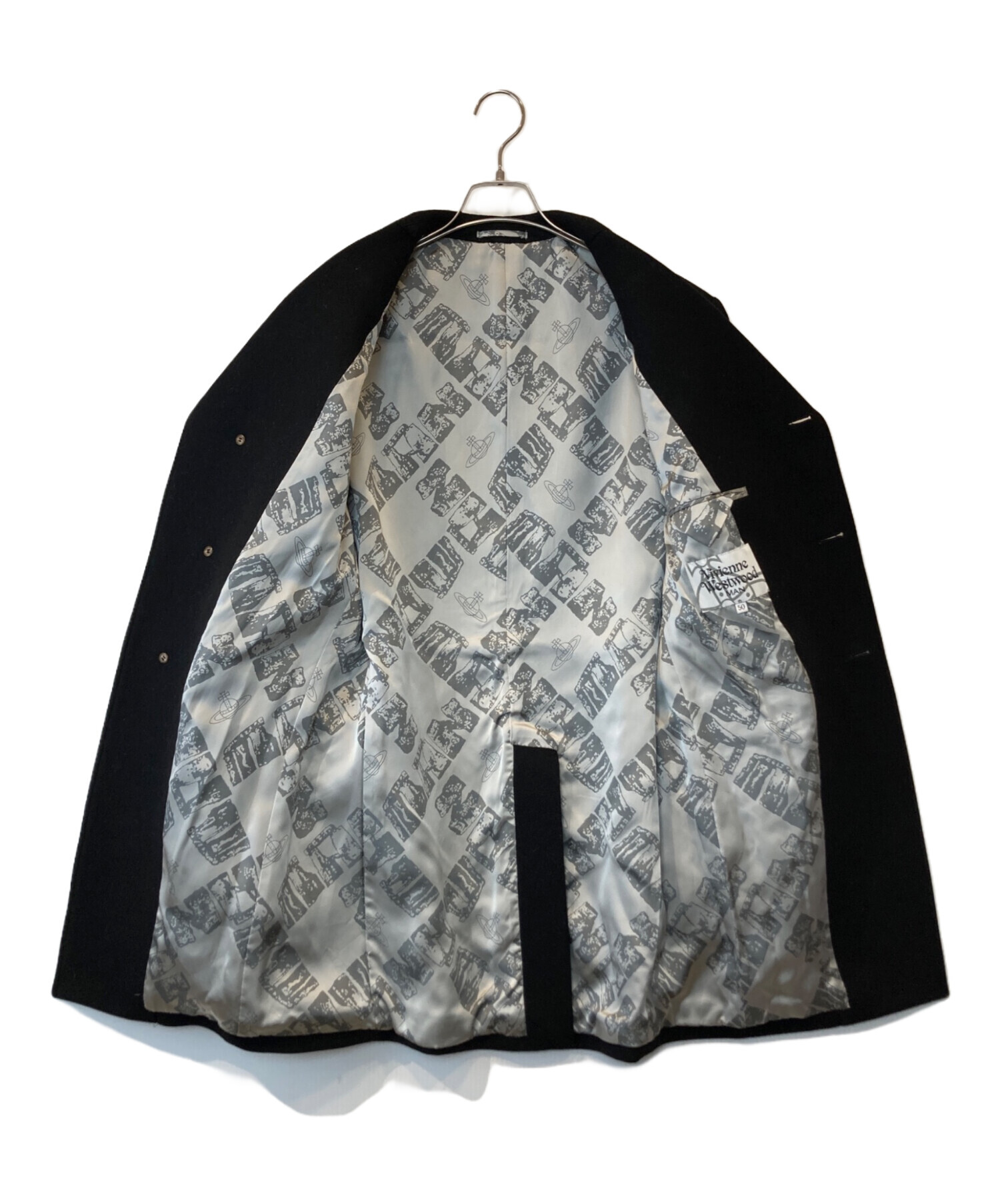 | スタッフコメント | 上品なシルエットとクラシックなデザインが魅力のメンズアウターです。袖口にヨゴレはありますが、全体的にはまだまだ着用いただける程度B。SIZE 50で幅広いスタイリングに対応。ビジネスからカジュアルまで活躍するおすすめの一着です。 |