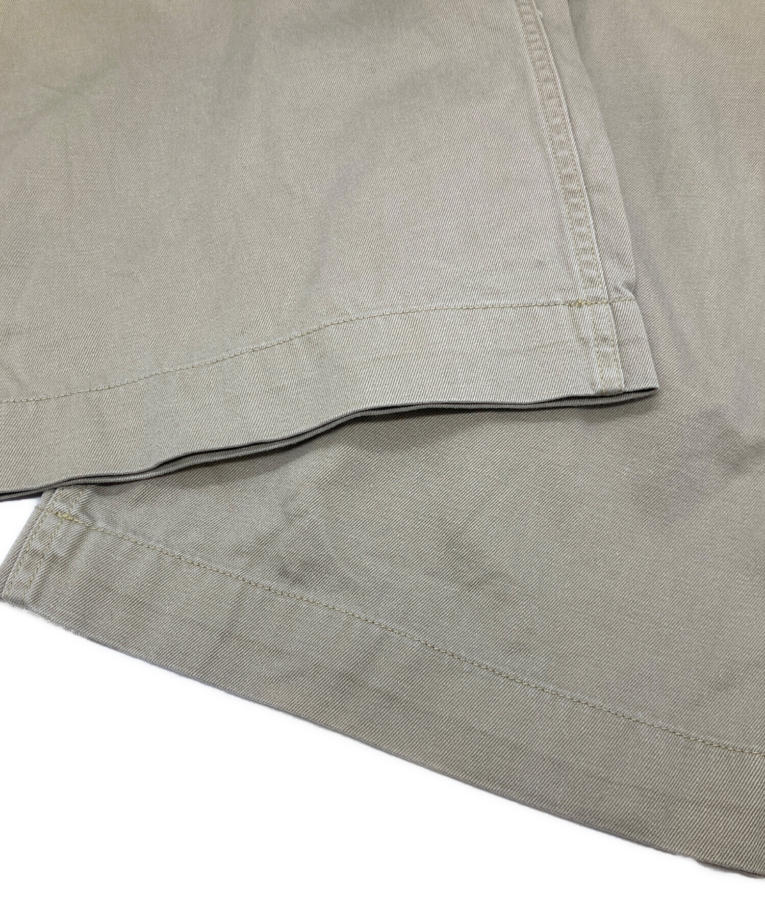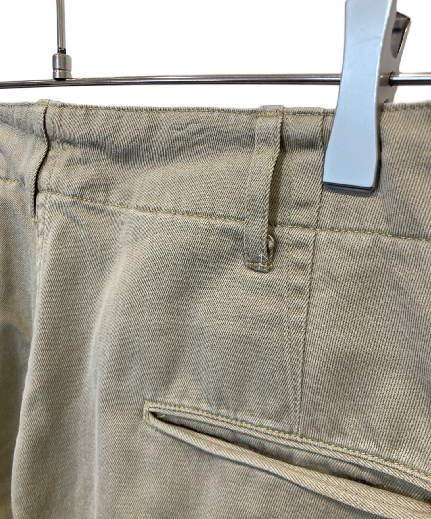 スタッフコメント ベージュカラーが上品で、アメカジからクラシックスタイルまで幅広く対応します。程よいハリと光沢感があり、ワイドシルエットながらも品のある仕上がり。SIZE Lでゆとりある穿き心地。程度Bのためお求めやすく、デイリーに活躍する一本です。