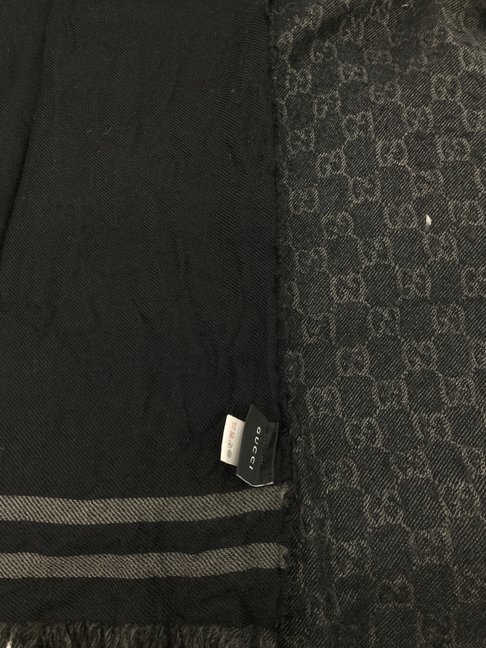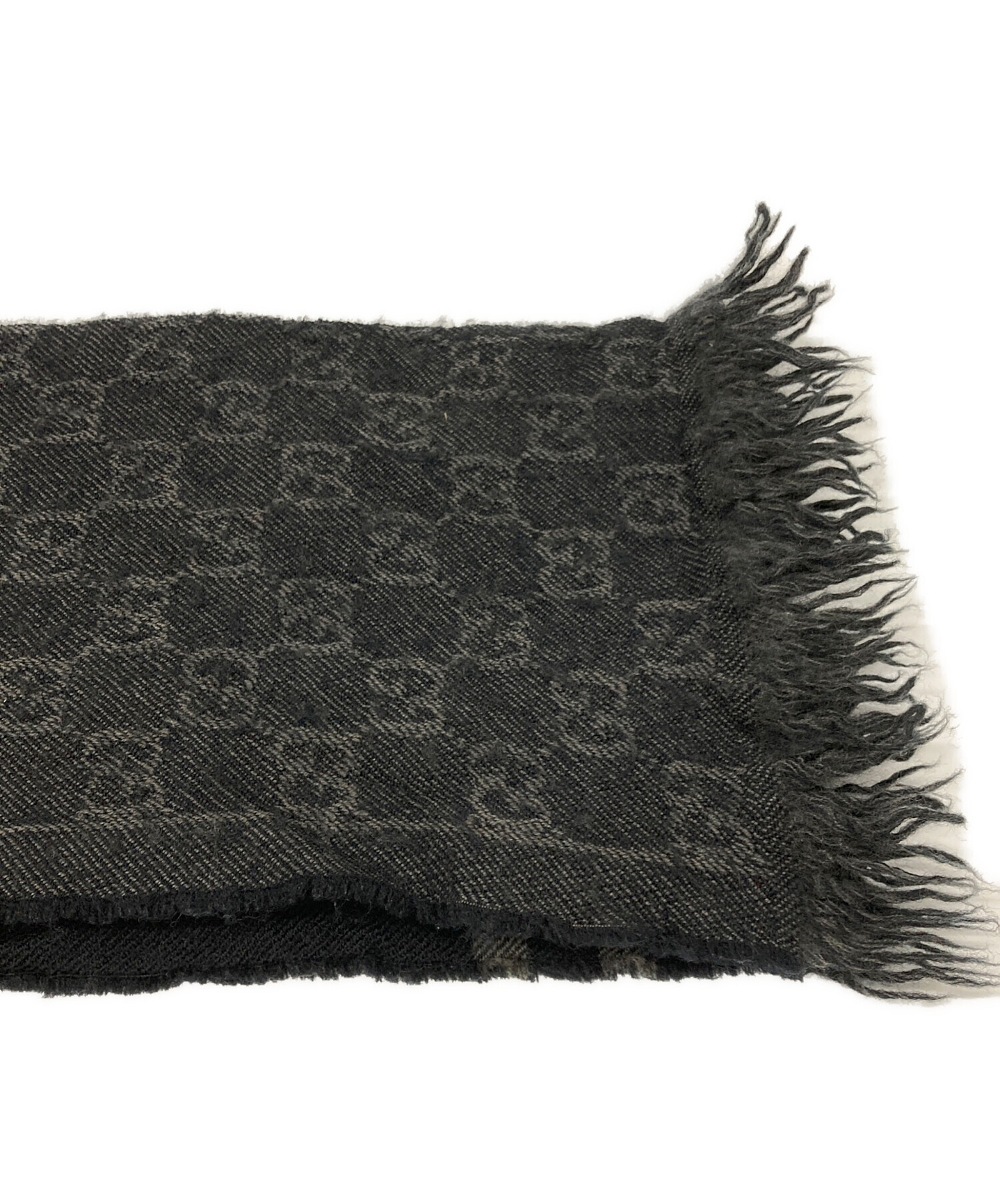 • GUCCI(グッチ)GUCCI (グッチ) GGウールストール ブラックの古着・服飾アイテム 毛羽立ち有