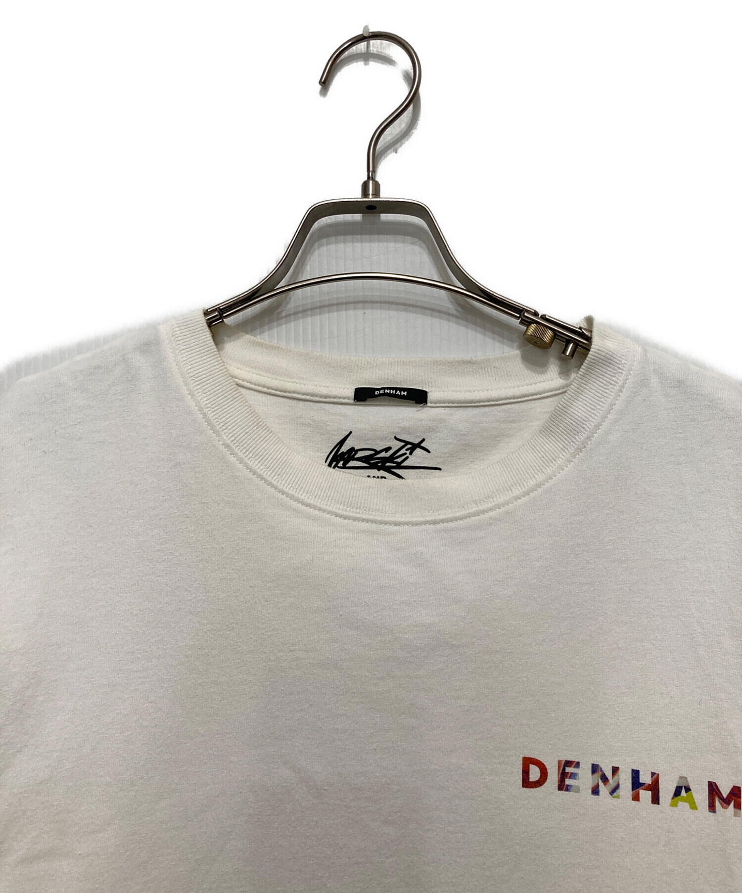 • Denham(デンハム)Denham (デンハム) プリントTシャツ ホワイト サイズ:XLの古着・服飾アイテム フロント ヨゴレ・使用感有