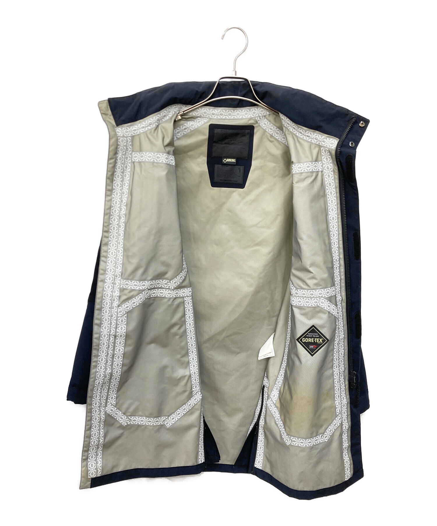 • WHITE MOUNTAINEERING(ホワイトマウンテ二アニング)WHITE MOUNTAINEERING (ホワイトマウンテ二アニング) GORE-TEX NYLON TAFFETA RAGLAN COAT ブラック サイズ:Sの古着・服飾アイテム ヨゴレ有