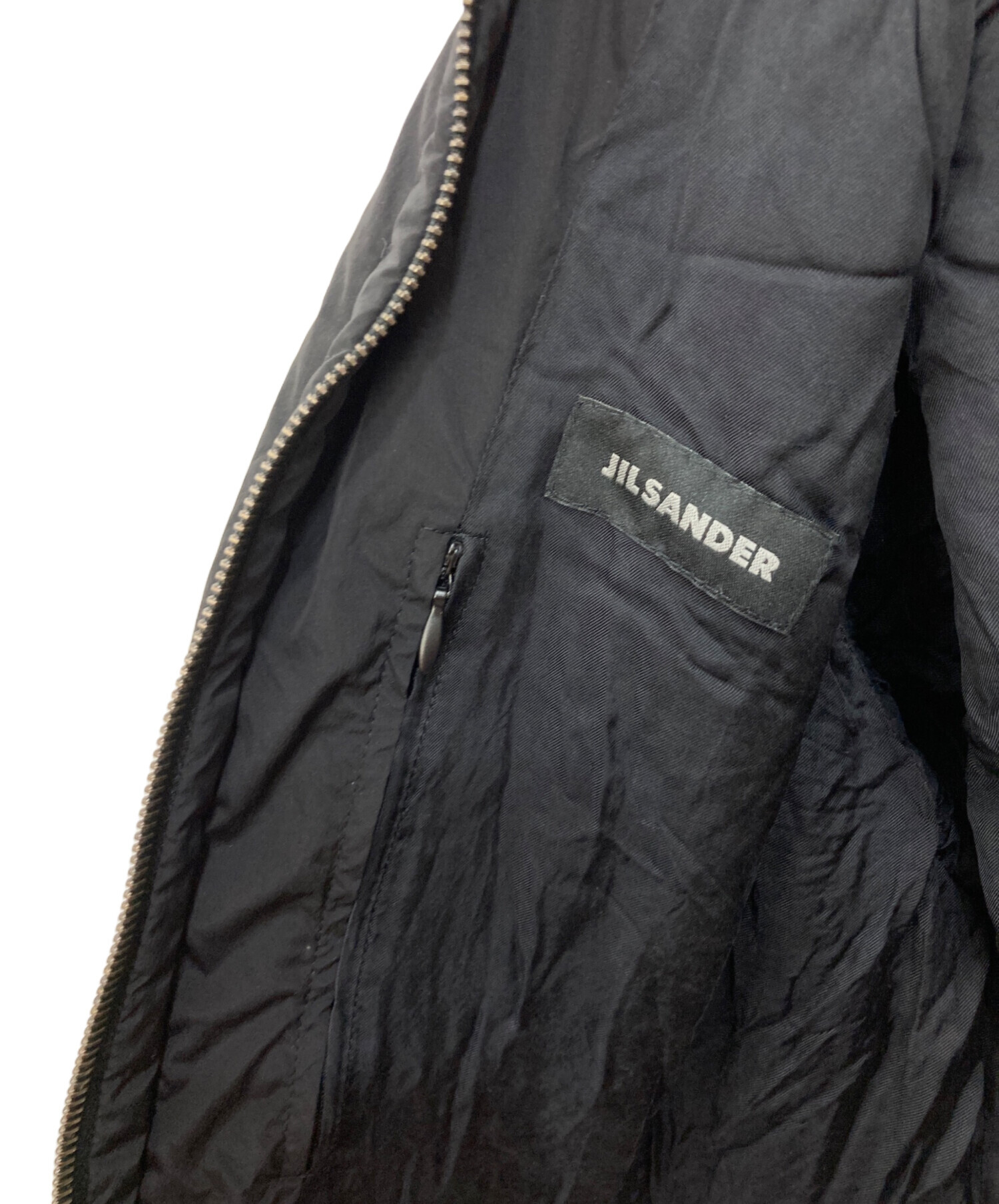 • JIL SANDER(ジルサンダー)JIL SANDER (ジルサンダー) リブカラーレイヤード中綿ボンバージャケット ブラック サイズ:46の古着・服飾アイテム ヨゴレ有