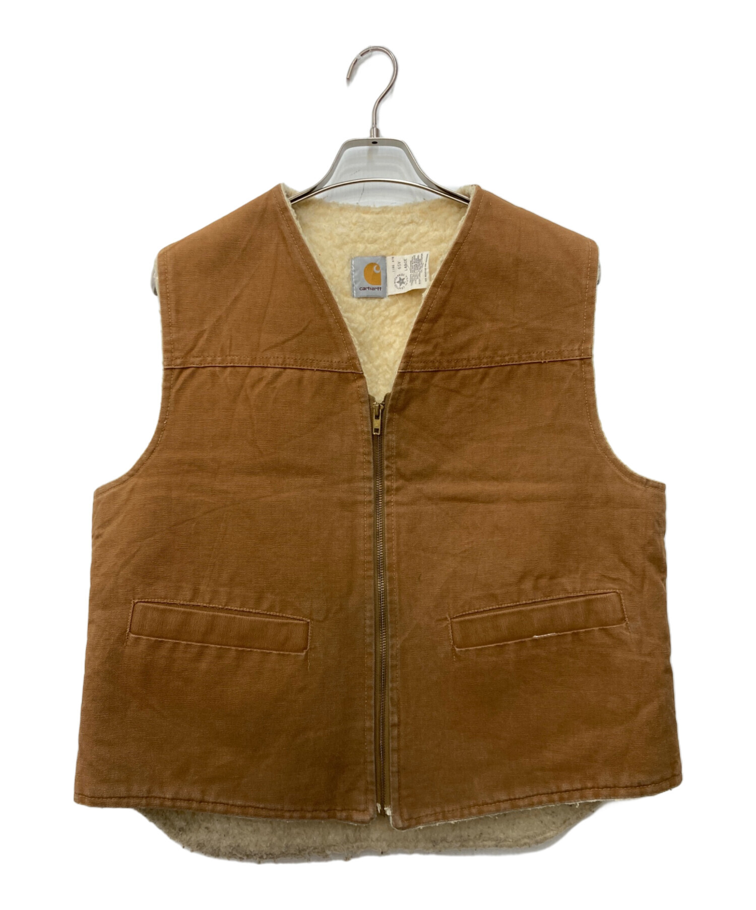 • CarHartt(カーハート)CarHartt (カーハート) 80’s裏ボアダックベスト ブラウン サイズ:Lの古着・服飾アイテム ヨゴレ有