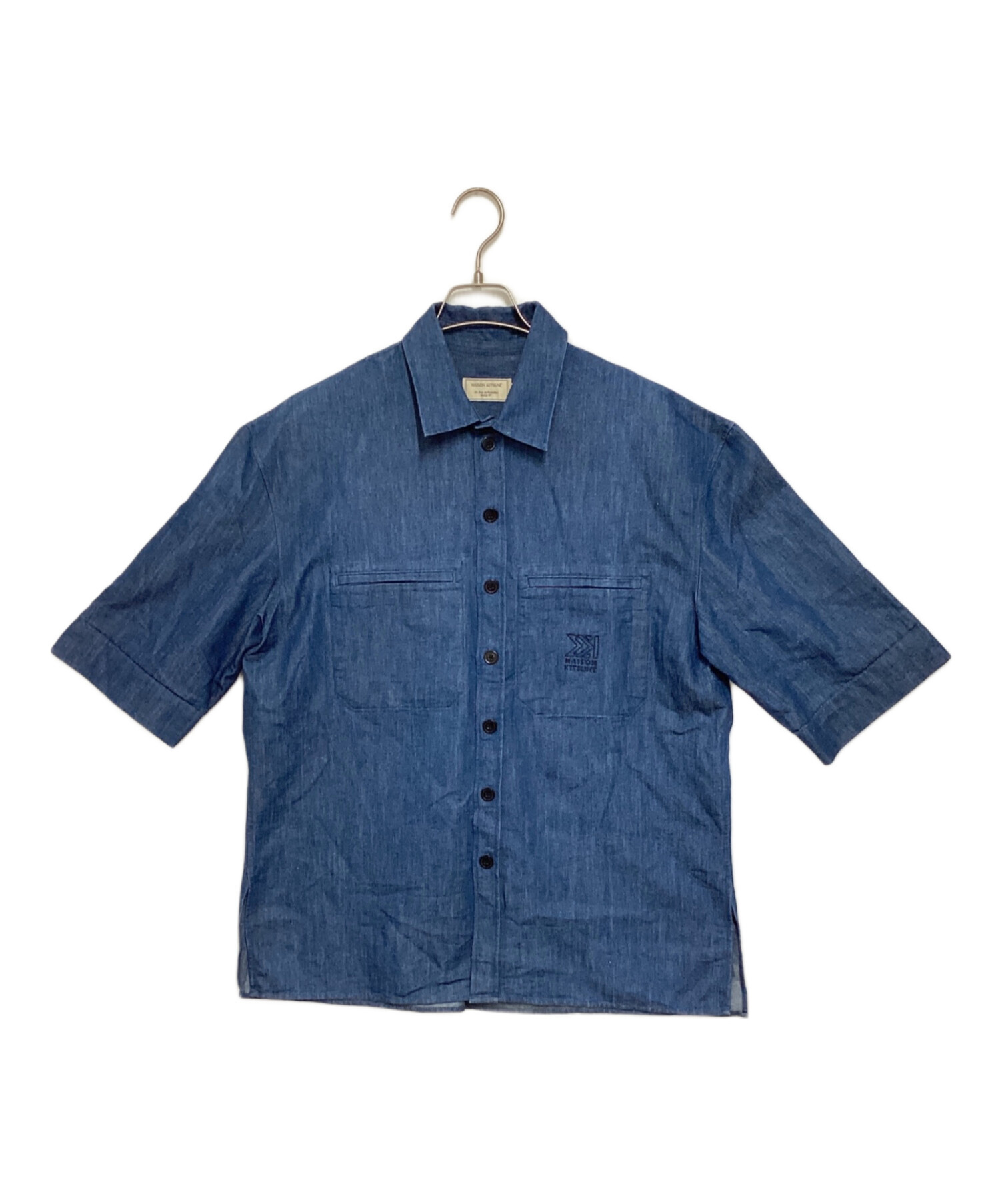 • maison kitsune(メゾンキツネ)MAISON KITSUNE (メゾンキツネ) 半袖シャツ インディゴ サイズ:40の古着・服飾アイテム 襟ヨゴレ有