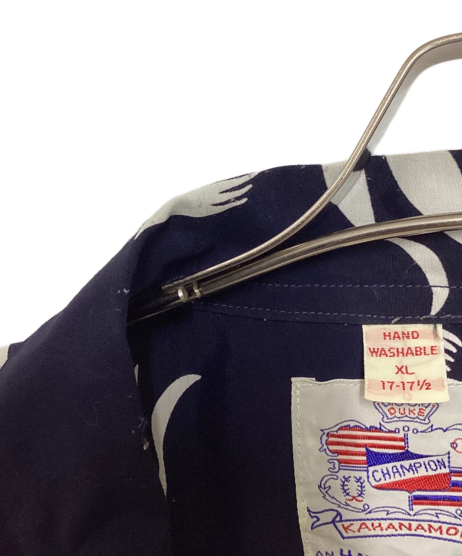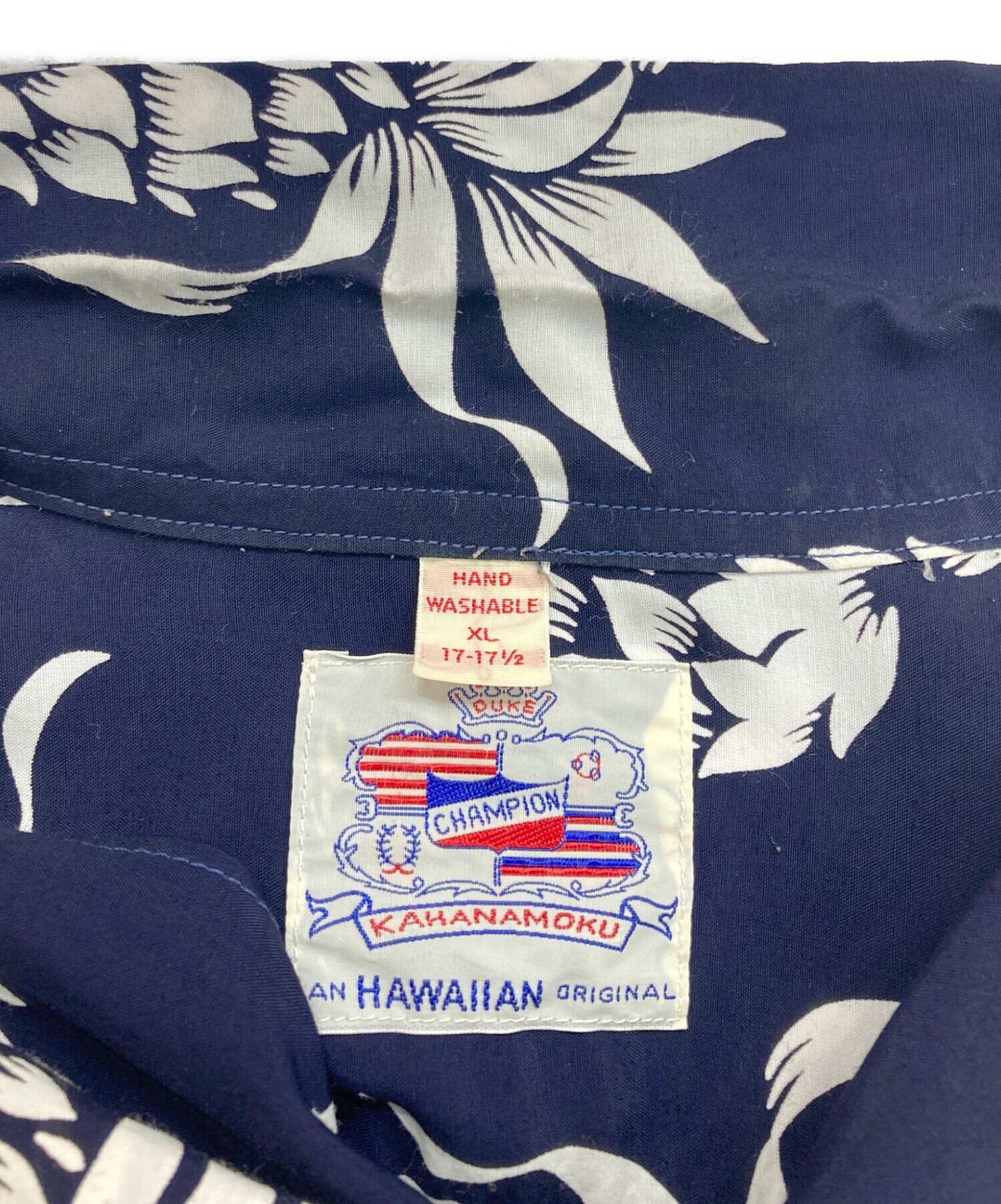 • Duke Kahanamoku(デュークカハナモク)DUKE KAHANAMOKU (デュークカハナモク) “DUKE'S PINEAPPLE” (LONG SLEEVE) ネイビー サイズ:XLの古着・服飾アイテム 襟元ヨゴレ有