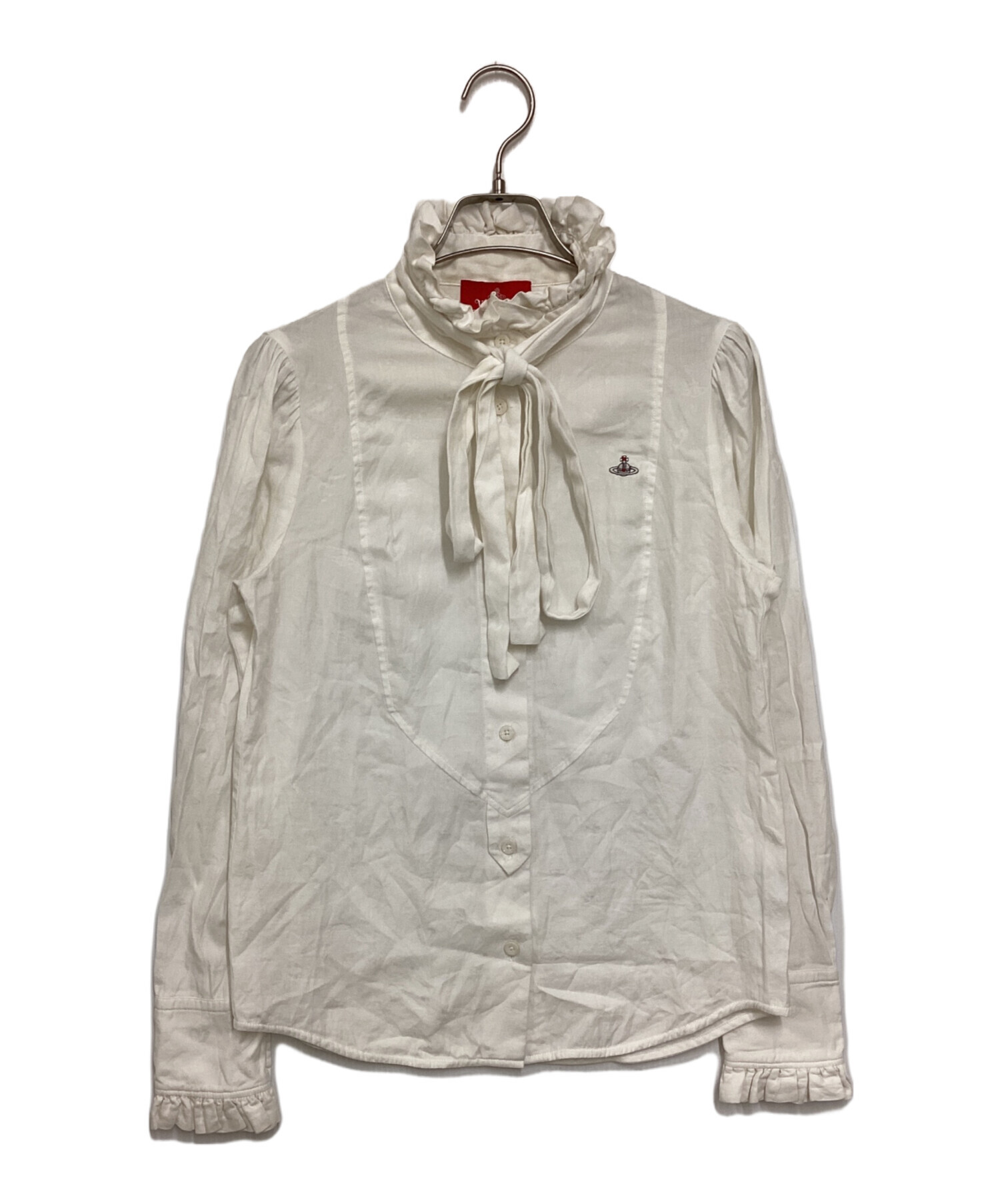 • Vivienne Westwood RED LABEL(ヴィヴィアンウエストウッドレッドレーベル)Vivienne Westwood RED LABEL (ヴィヴィアンウエストウッドレッドレーベル) オーブ刺繍ブラウス ホワイト サイズ:02の古着・服飾アイテム 紐シミ