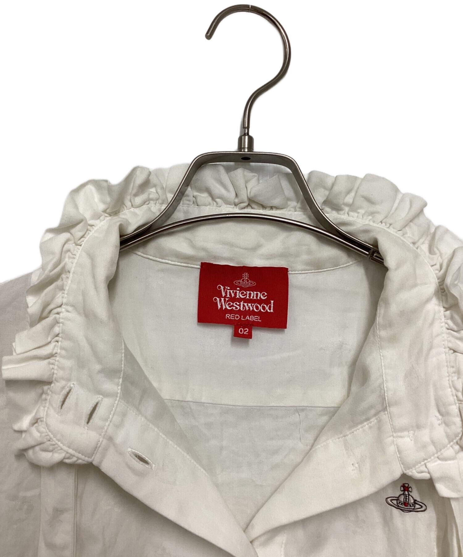• Vivienne Westwood RED LABEL(ヴィヴィアンウエストウッドレッドレーベル)Vivienne Westwood RED LABEL (ヴィヴィアンウエストウッドレッドレーベル) オーブ刺繍ブラウス ホワイト サイズ:02の古着・服飾アイテム 首元黄ばみ