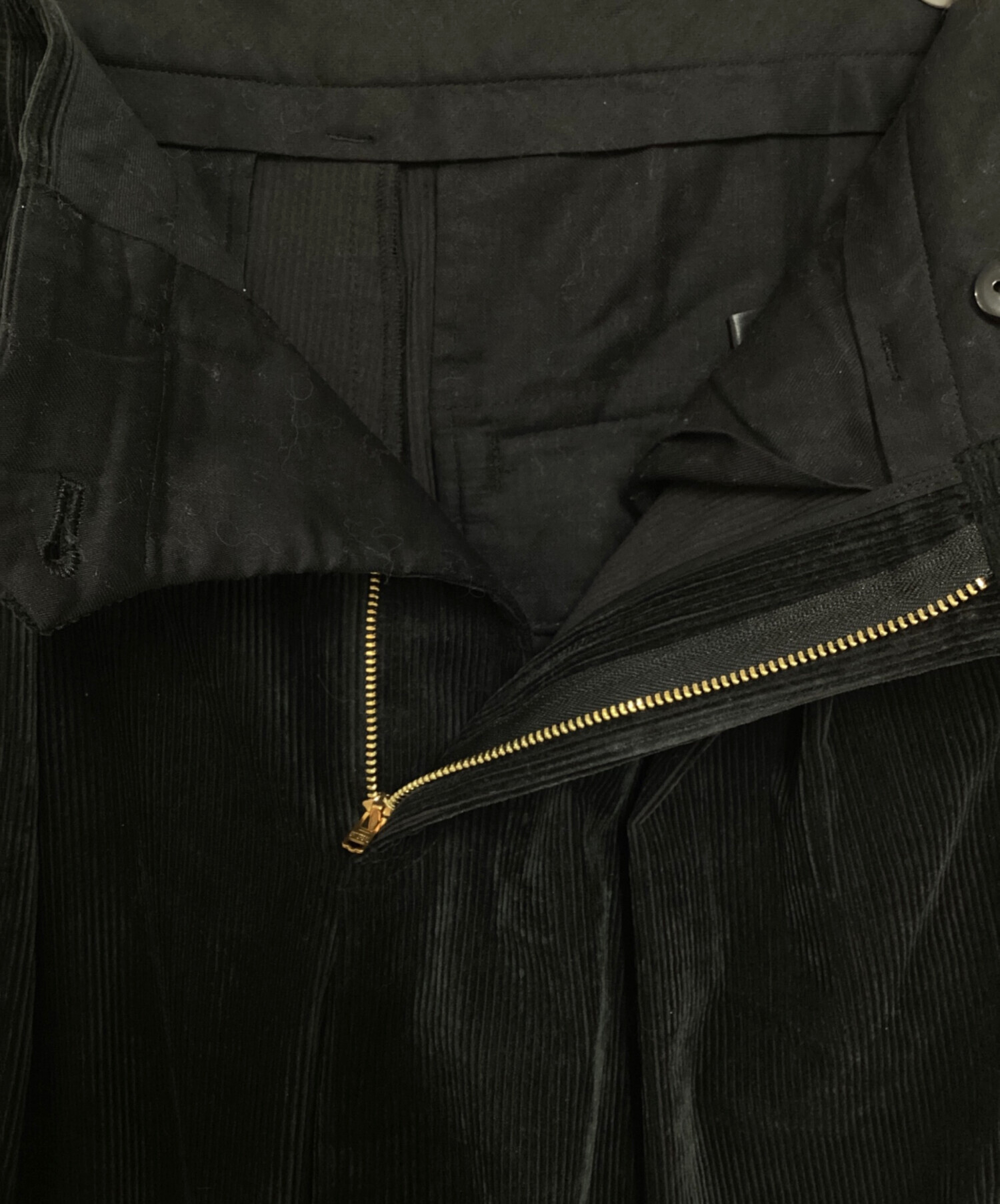 • journal standard L'essage(ジャーナルスタンダード レサージュ)journal standard L'essage (ジャーナルスタンダード レサージュ) ストレッチコーデュロイ 2タックパンツ ブラック サイズ:36の古着・服飾アイテム 小穴