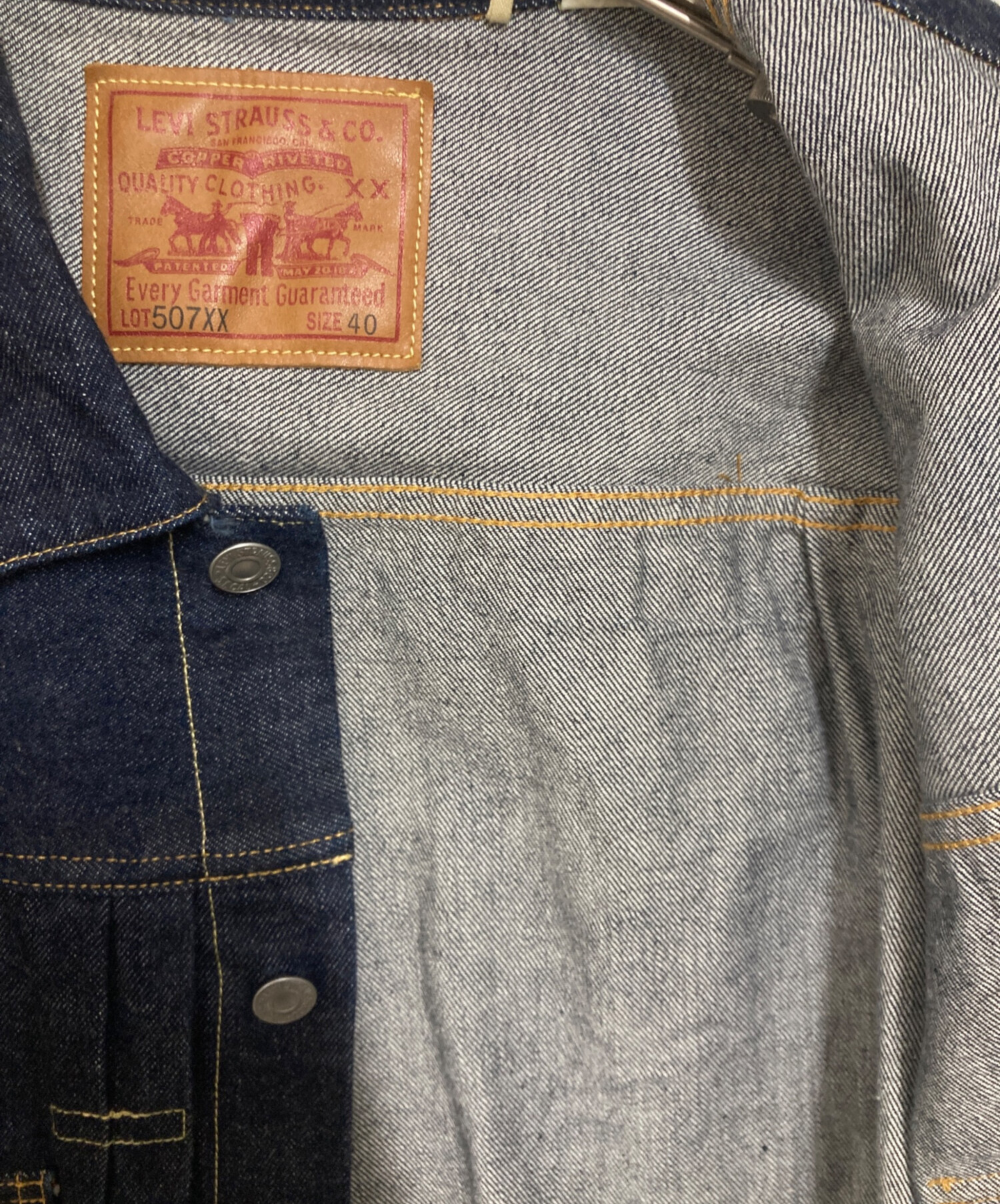 • LEVI'S(リーバイス)LEVI'S (リーバイス) 1953年復刻 507XX Type-ⅡJacket インディゴ サイズ:40の古着・服飾アイテム ボタンホールホツレ