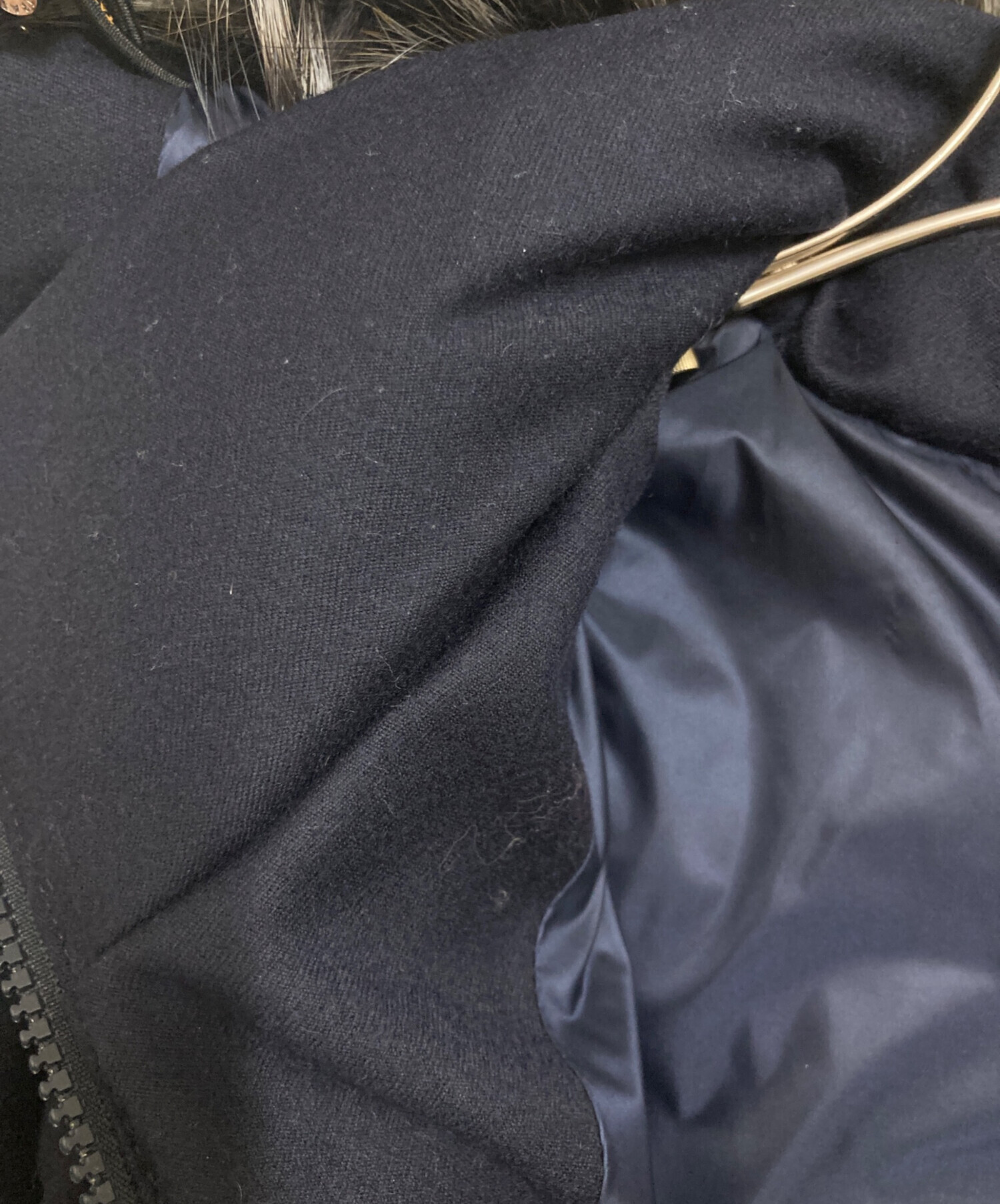 | 素材 | 表地: 羊毛 100% 中わた: ダウン 90% フェザー 10% 裏地: ナイロン 100% 毛皮・ファー: ポーランドラクーン |