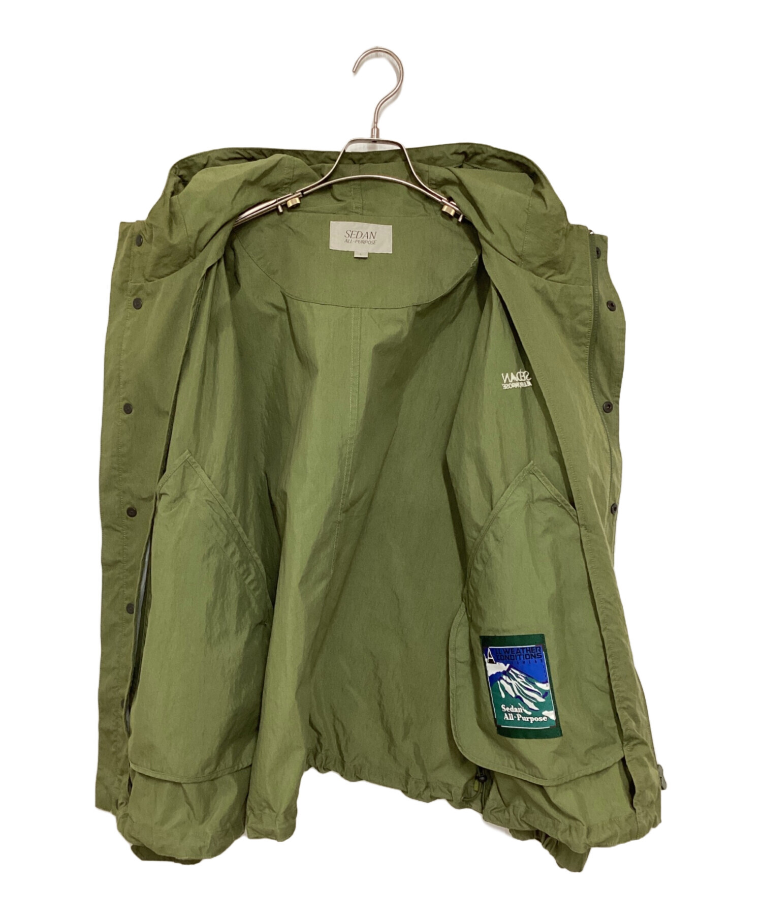 • SEDAN ALL-PURPOSE(セダンオールパーパス)SEDAN ALL-PURPOSE (セダンオールパーパス) NYCO Hooded Jacket グリーン サイズ:Lの古着・服飾アイテム 使用感、シミ有