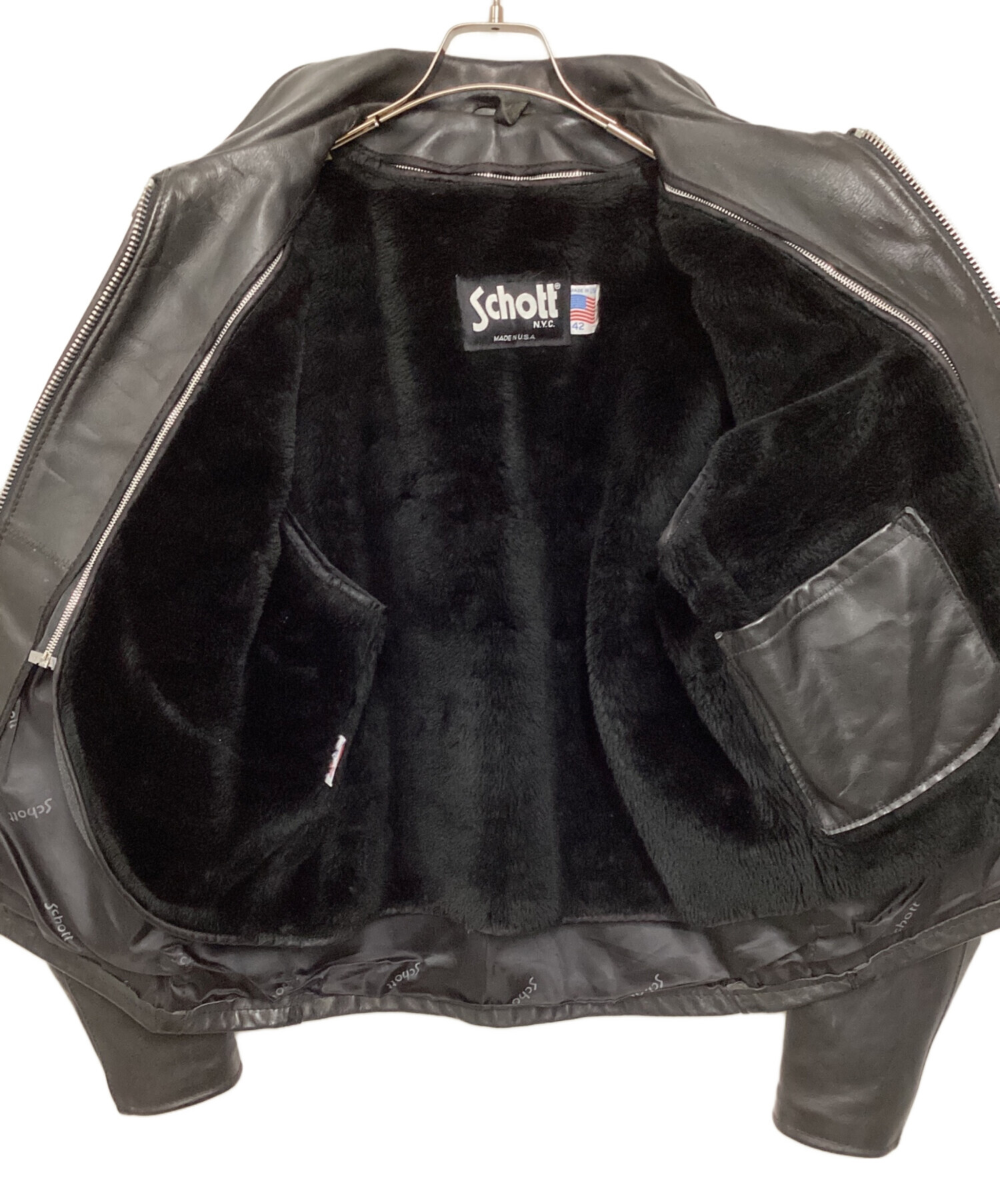 • Schott(ショット)Schott (ショット) ボアライナー付シングルライダースジャケット ブラック サイズ:42の古着・服飾アイテム クスミ有