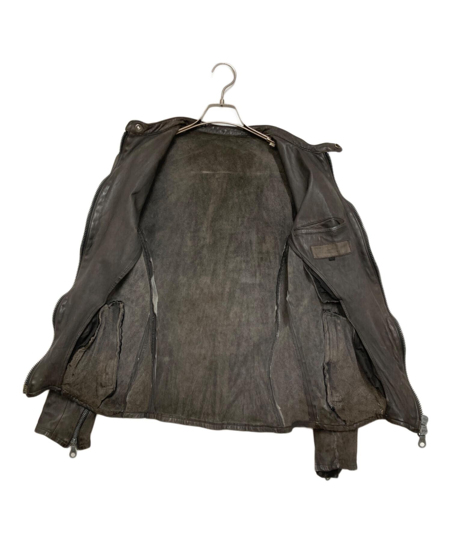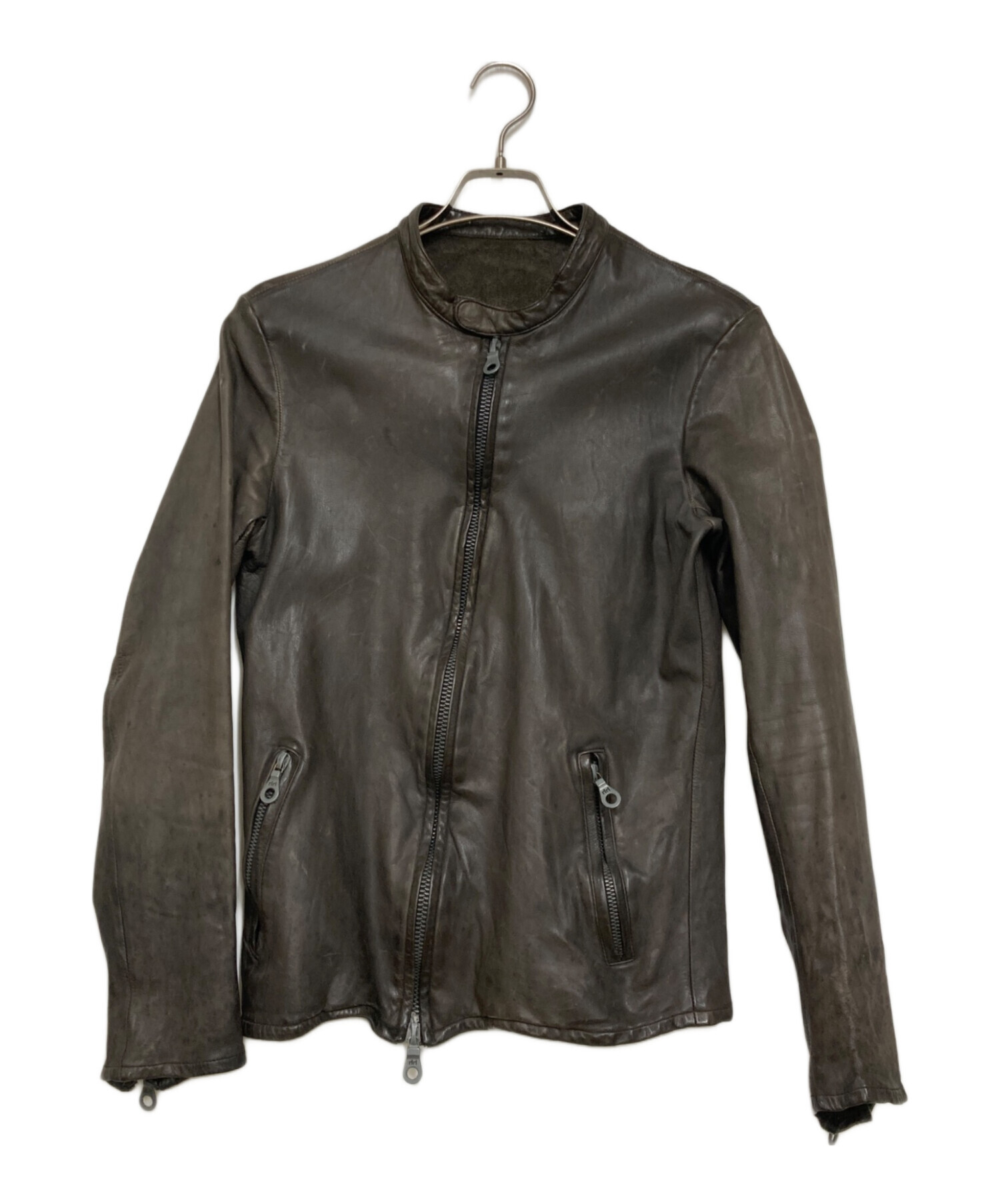 製品染め キップレザー シングルライダースジャケット