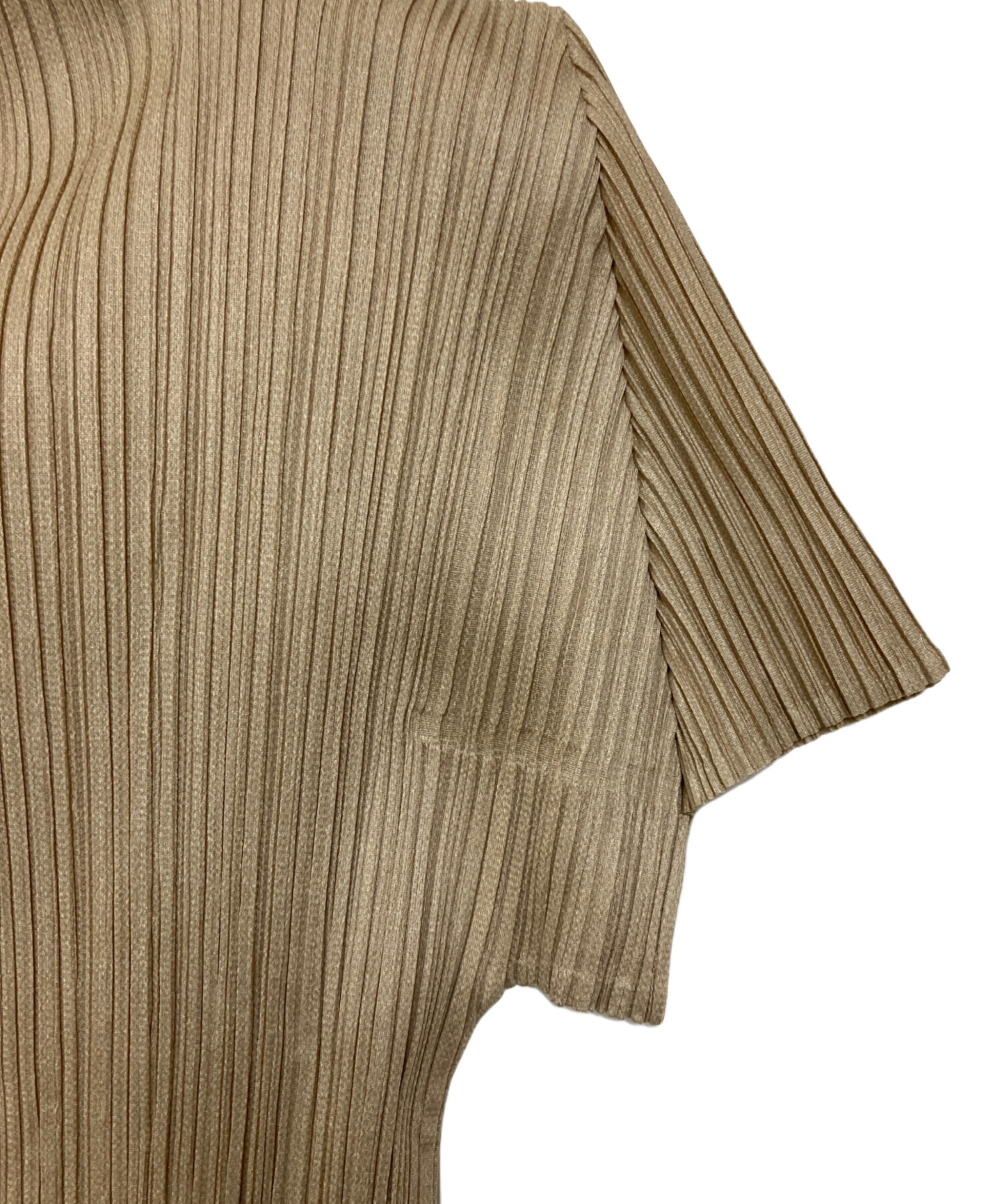 • PLEATS PLEASE(プリーツプリーズ)PLEATS PLEASE (プリーツプリーズ) S/S ハイネックプリーツカットソー ベージュ サイズ:3の古着・服飾アイテム