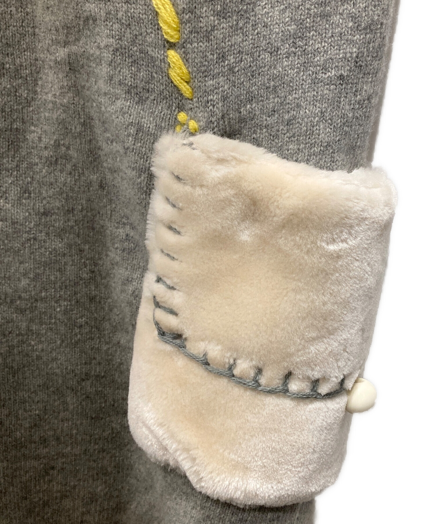 | 素材 | 本体:毛 100% 表地ファー:ポリエステル 100% 裏地:ポリエステル 100% 刺繍糸:アクリル 70% 毛 30% |