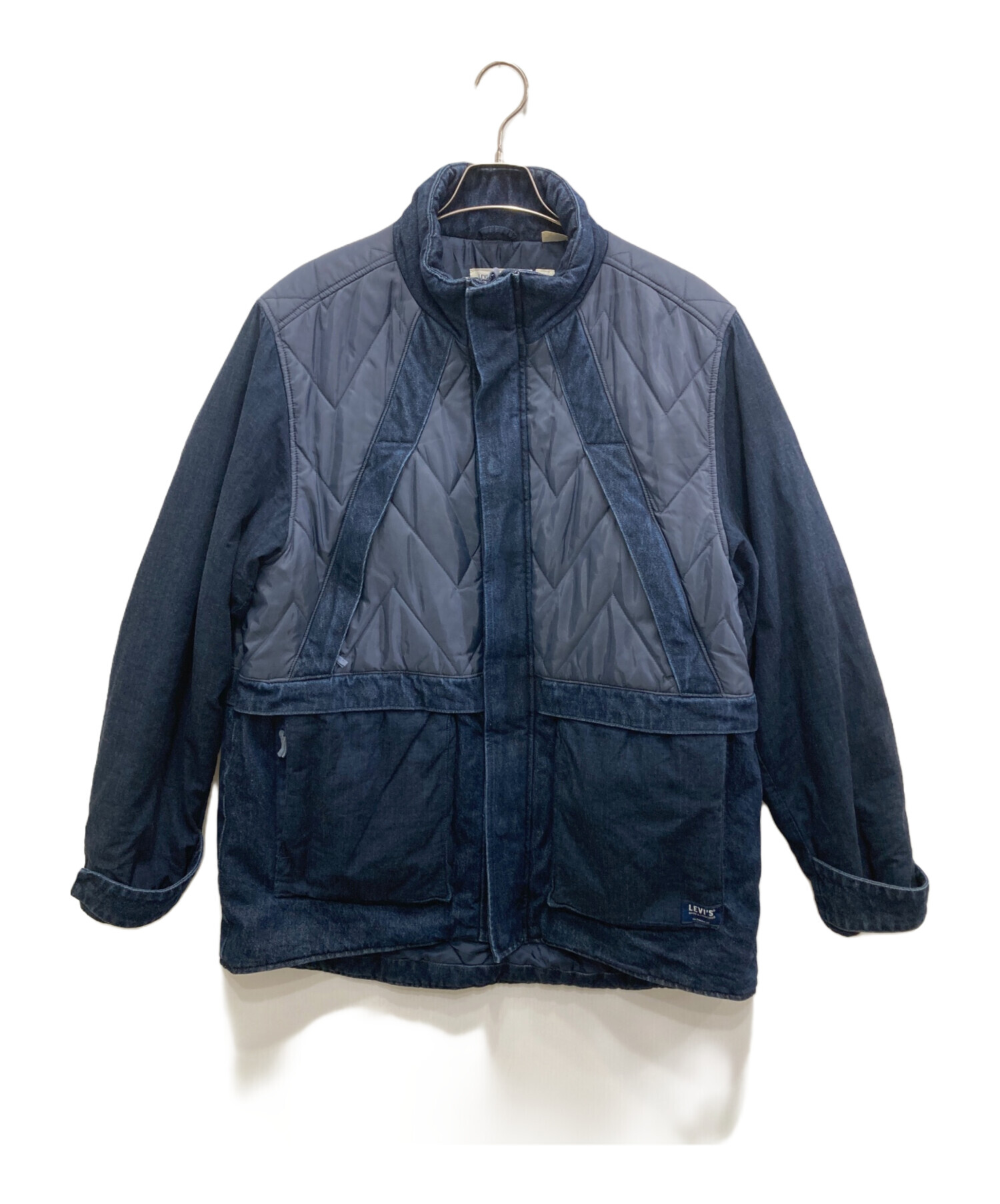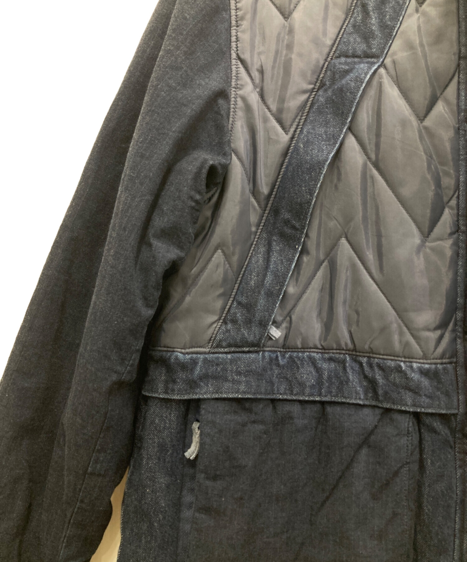 スタッフコメント デニムとナイロンの異素材切り替えが特徴的な中綿入りコートまたはジャケットです。