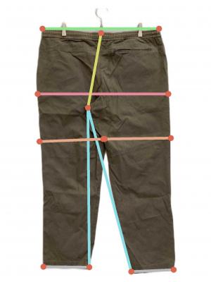 ウエスト周り約98cm ヒップ周り約115.5cm もも周り約65.5cm 裾周り約38cm 股上(後ろ)約34cm 股下(後ろ)約71cm