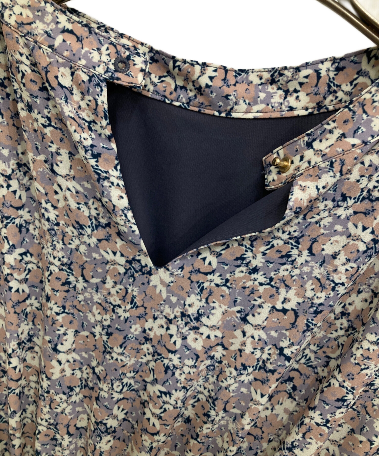 小花柄スタンドカラーワンピース