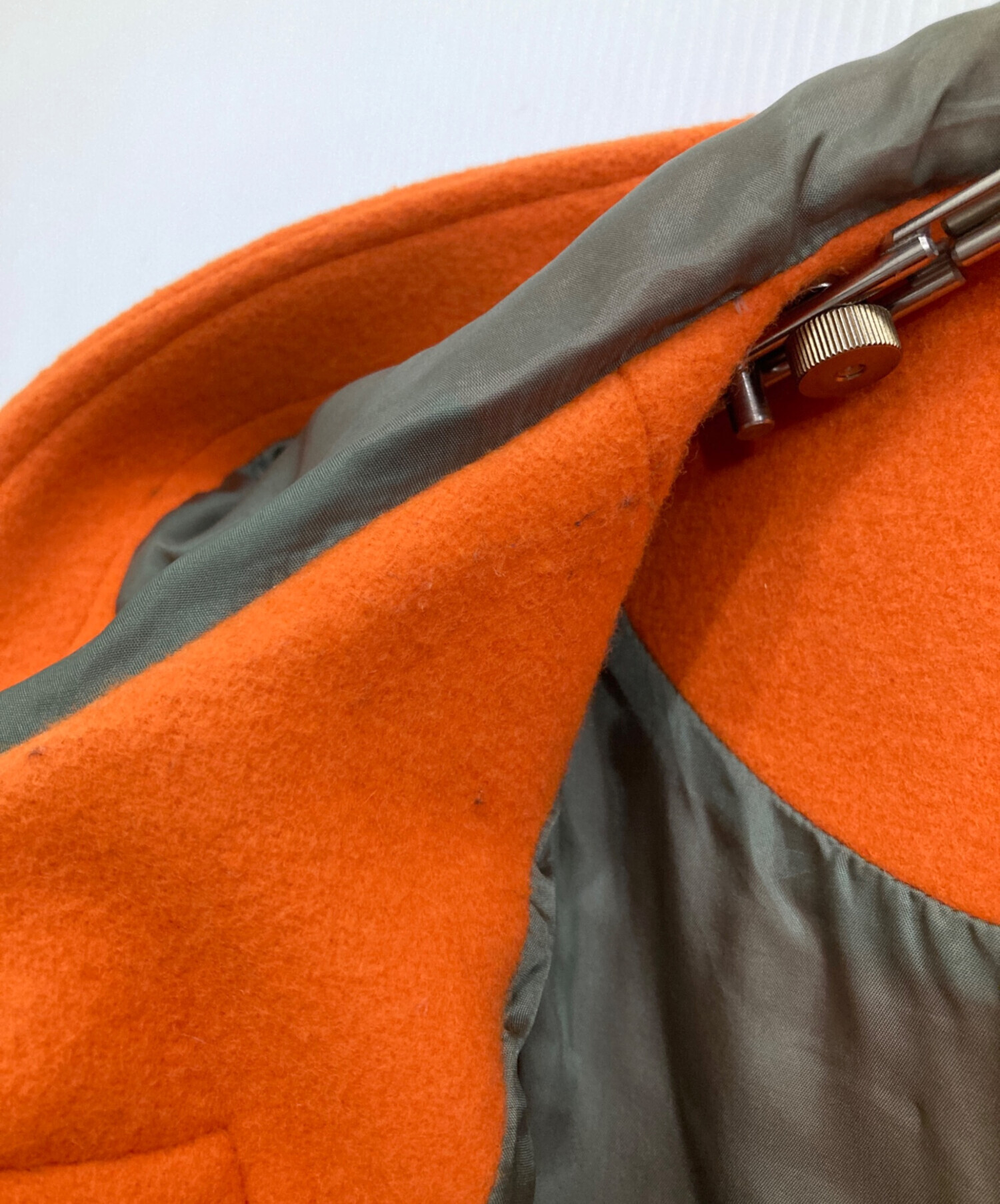 目立つシミや汚れ、におい等がある場合は商品画像や説明文にて極力表記させていただいておりますが、中古品という商品の特性上、全ての瑕疵や不備、洋服直し箇所を撮影・記載をすることは難しくなっております。また、ほとんどのアイテムは店頭と併売しておりますため、出品掲載時からコンディションが変動している場合もございます。あらかじめご了承くださいませ。