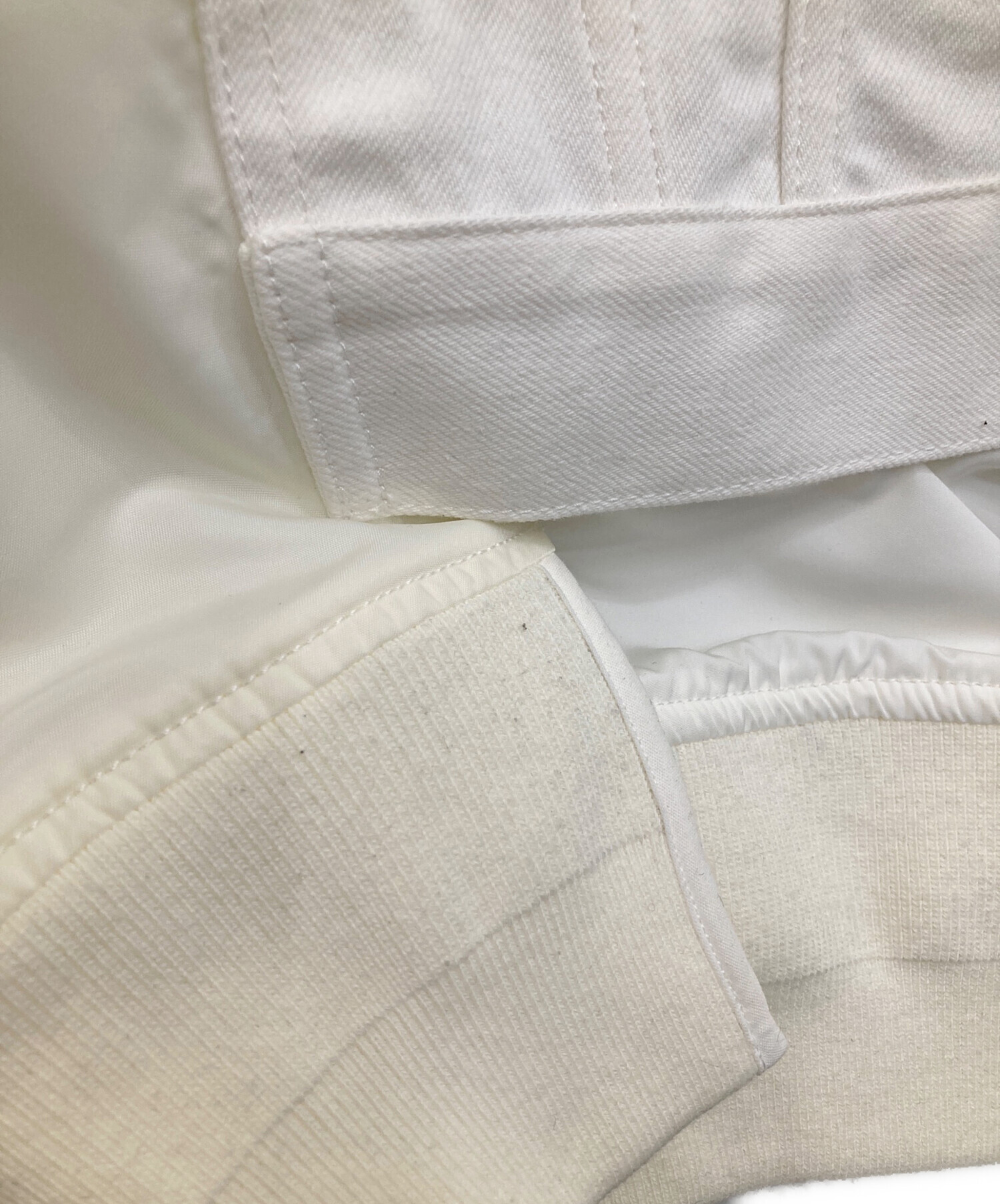 | 素材 | 表生地: コットン 100% 別布部分: ナイロン 100% 裾: ポリエステル 45% コットン 42% ナイロン 12% ポリウレタン 1% 袖: ポリエステル 49% コットン 47% ナイロン 3% ポリウレタン 1% 裏生地: ポリエステル 100% |