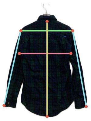当サイトでは商品の表記サイズの他に、出品商品を採寸しサイズを記載しております。また、実際のアイテム画像を使用した計測とイラストを使用した計測の2パターンがございます。