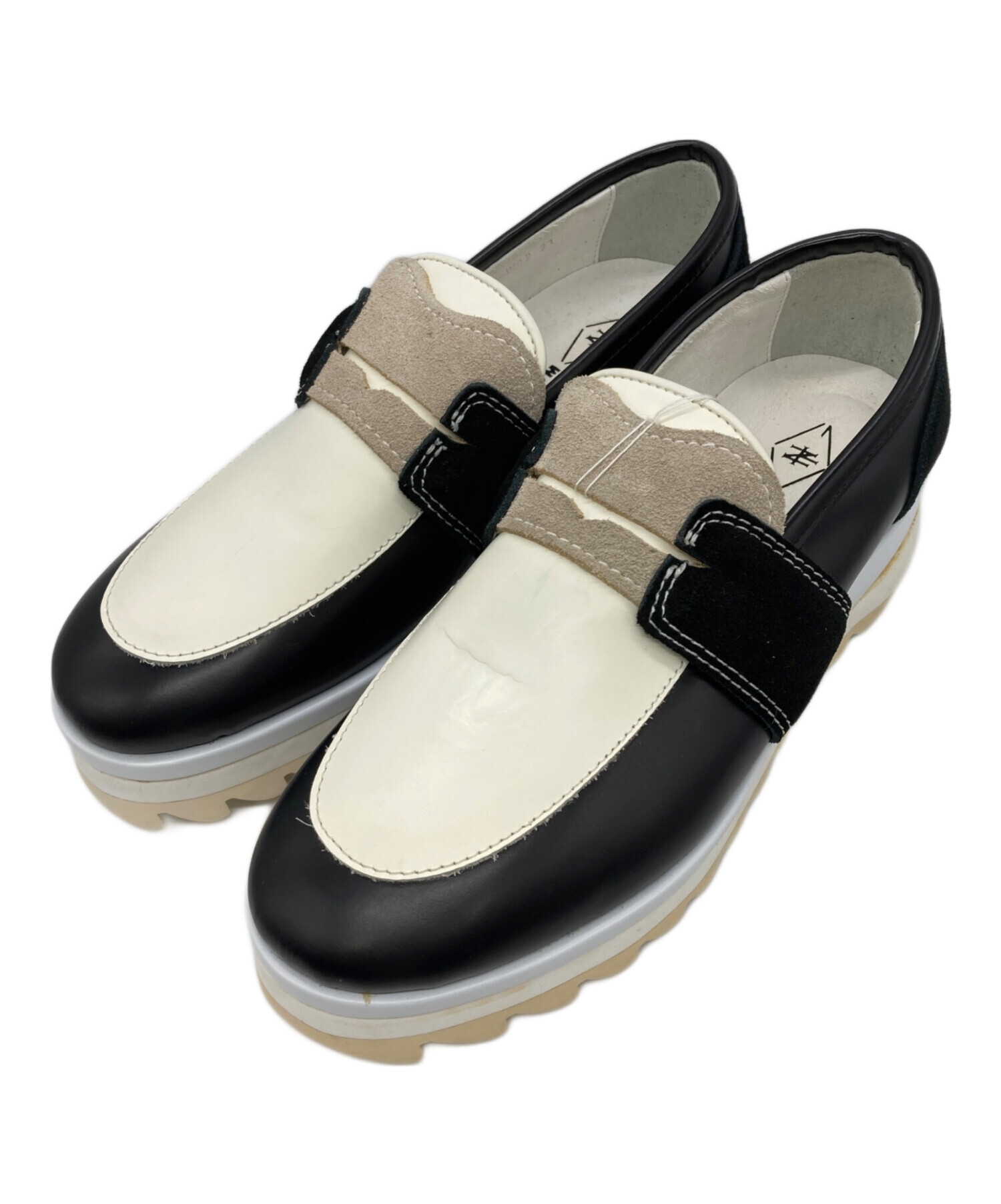 • FACETASM(ファセッタズム)FACETASM (ファセッタズム) シャークソールローファー ブラック×ホワイト サイズ:23の古着・服飾アイテム ヨゴレ