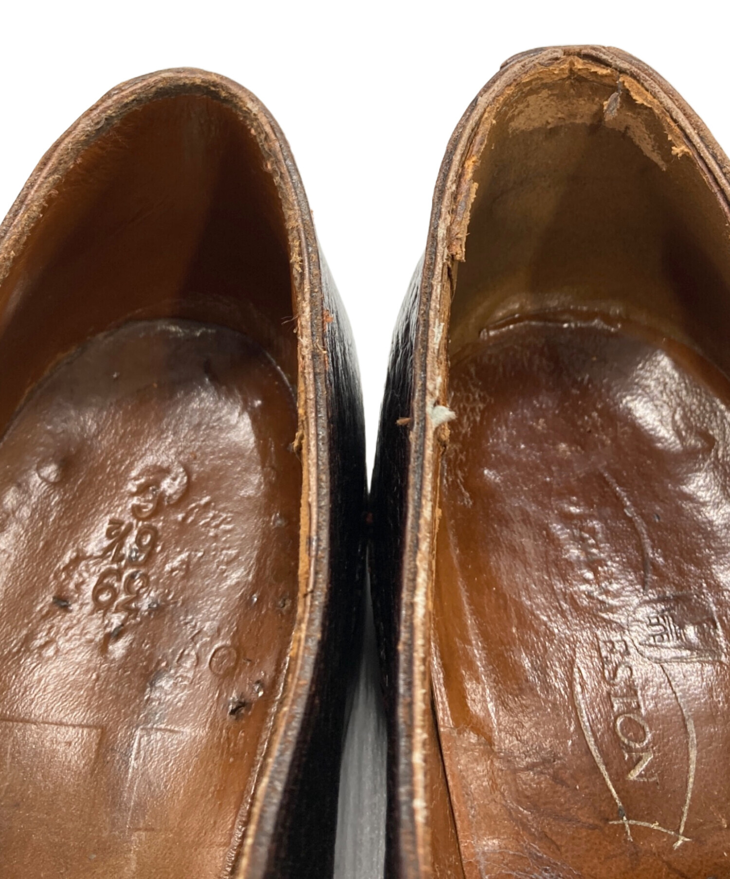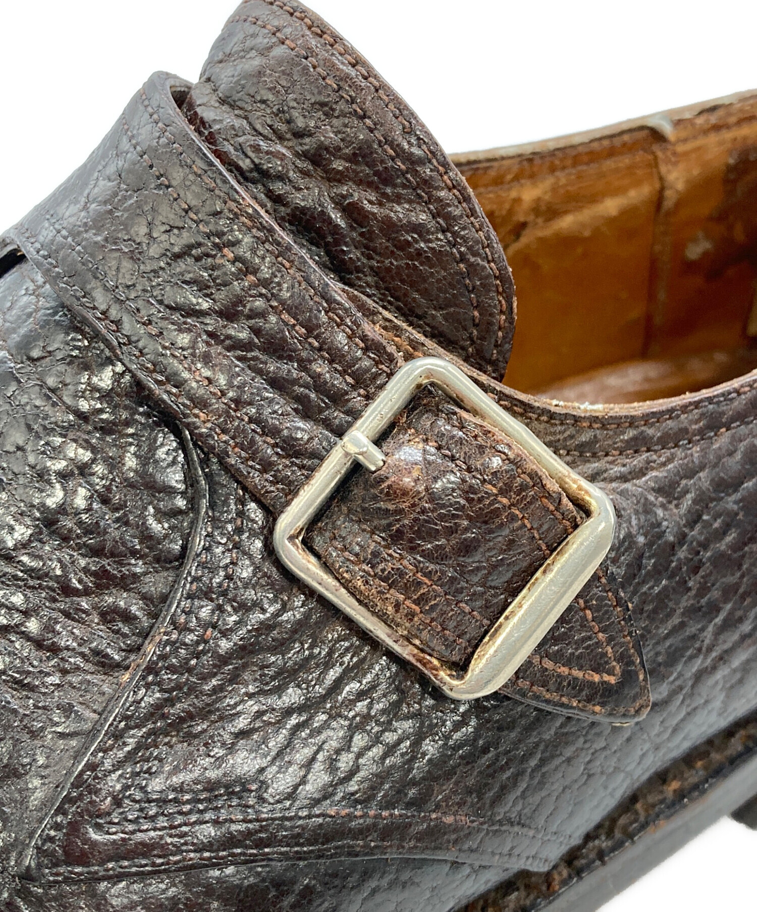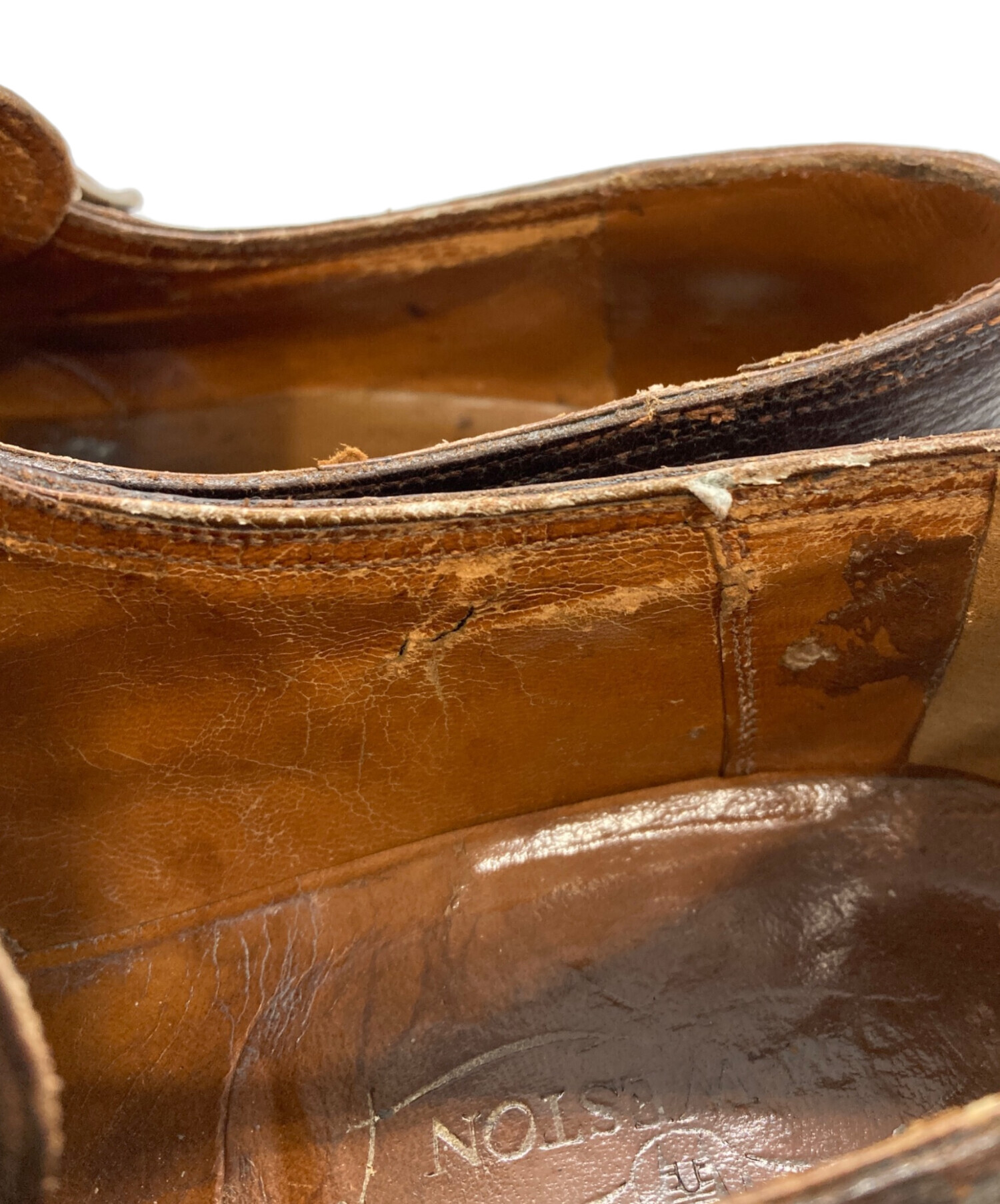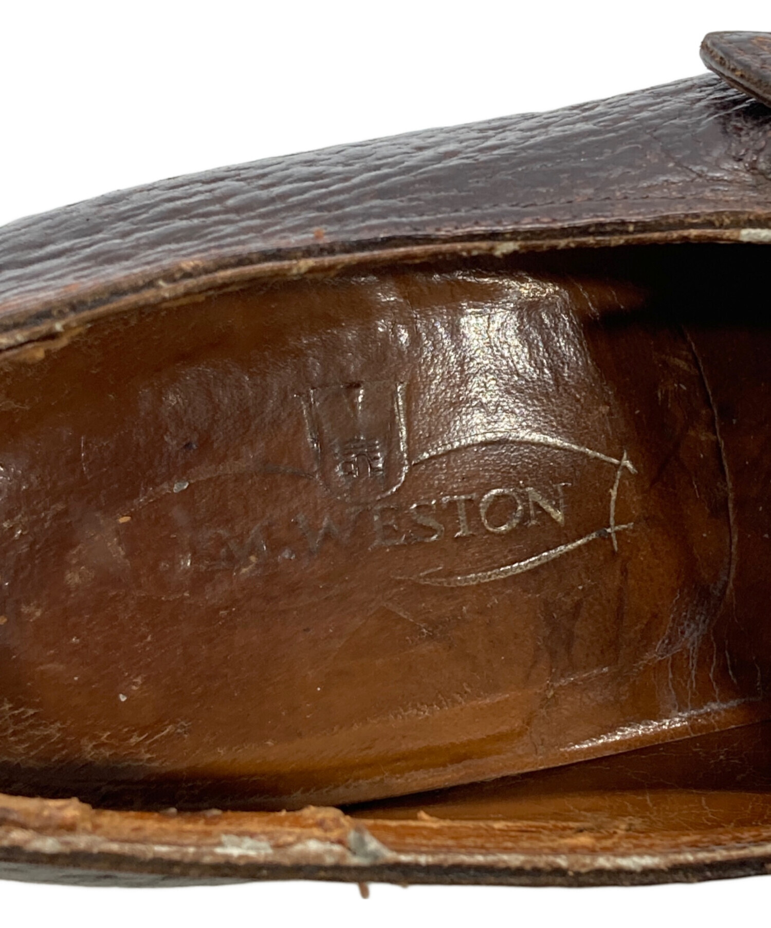 • J.M.WESTON(ジェイエムウエストン)J.M.WESTON (ジェイエムウエストン) モンクストラップシューズ ブラウン サイズ:6 1/2の古着・服飾アイテム 内部ダメージ