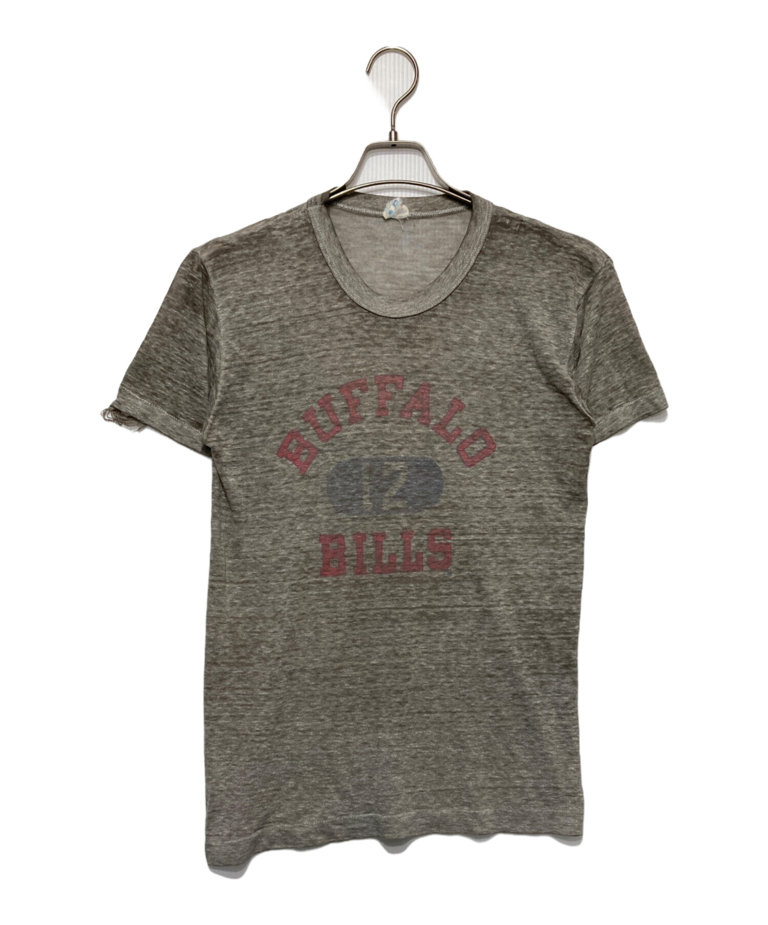 • Champion(チャンピオン)Champion (チャンピオン) BUFFALO BILLS3段プリントTシャツ グレー サイズ:Mの古着・服飾アイテム 袖口ダメージ
