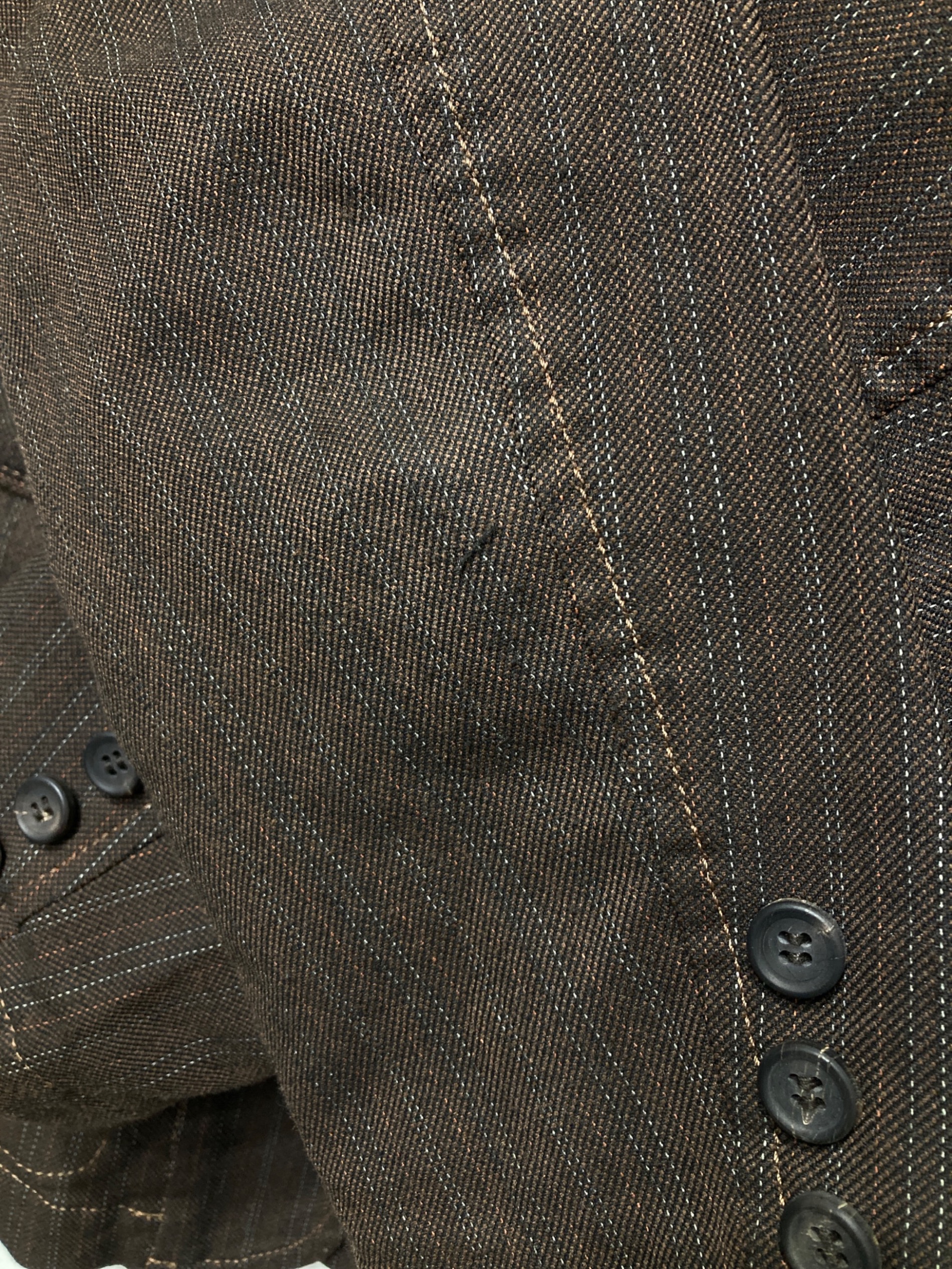 目立つシミや汚れ、におい等がある場合は商品画像や説明文にて極力表記させていただいておりますが、中古品という商品の特性上、全ての瑕疵や不備、洋服直し箇所を撮影・記載をすることは難しくなっております。また、ほとんどのアイテムは店頭と併売しておりますため、出品掲載時からコンディションが変動している場合もございます。あらかじめご了承くださいませ。