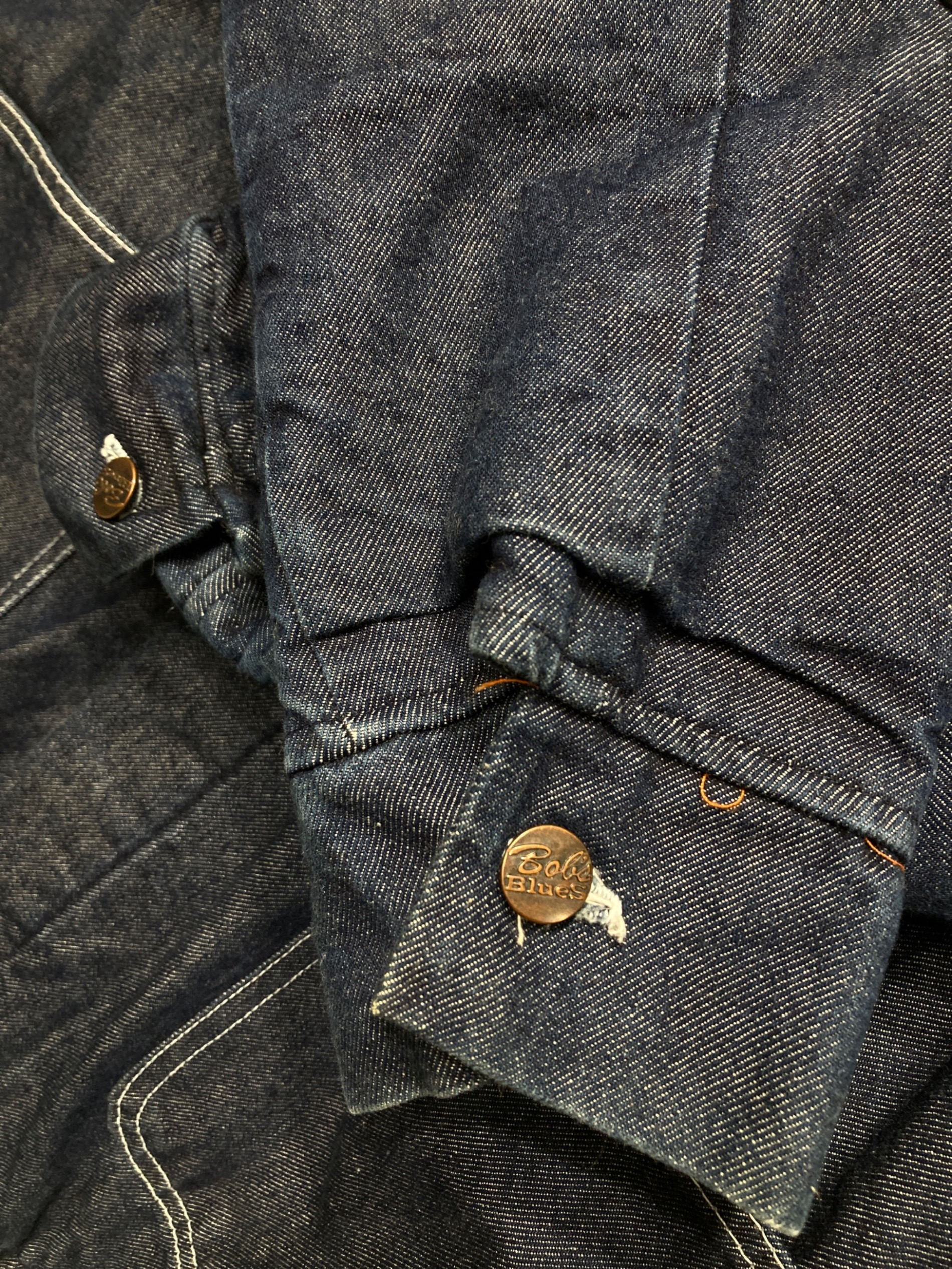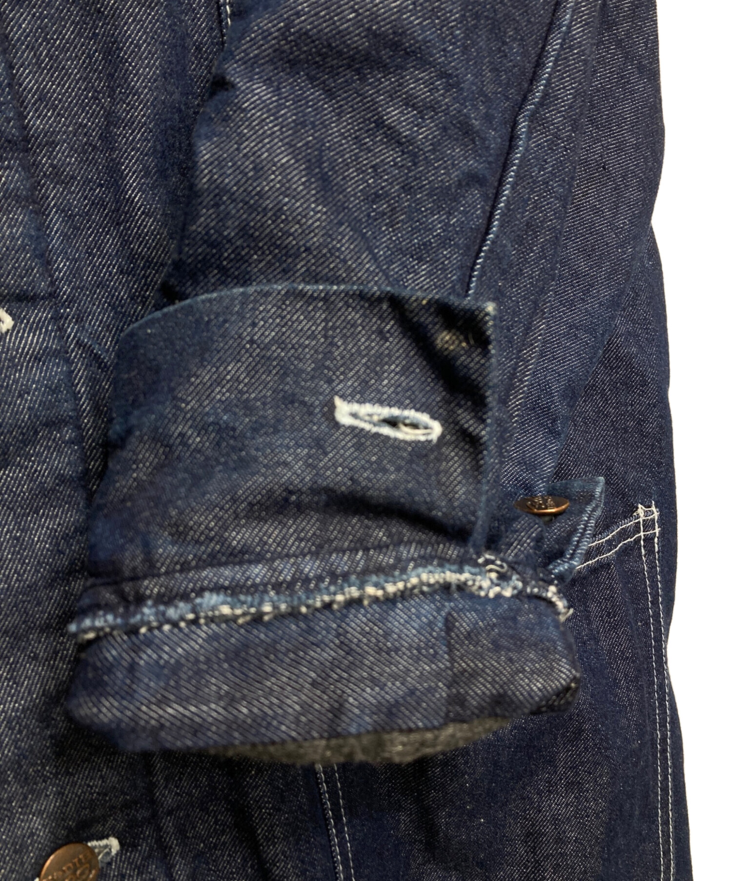 • Bob Barker(ボブバーカー)Bob Barker (ボブバーカー) 裏地ブランケットカバーオール インディゴ サイズ:Mの古着・服飾アイテム 内部毛羽立ち
