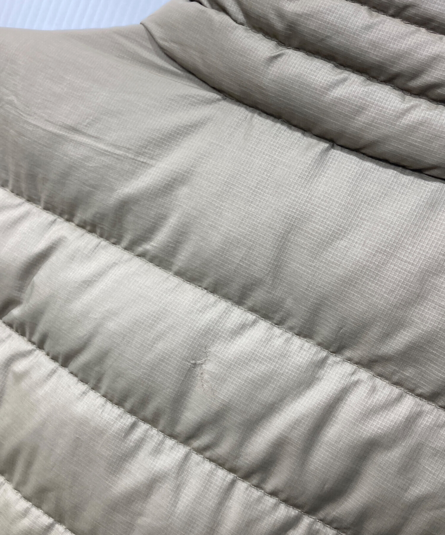 | 素材 | 表地:ポリエステル100% 裏地:ポリエステル100% 中綿:グースダウン85% ダウンを最小限に使用 |