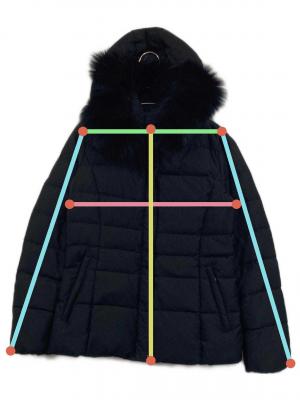 | 素材 | 表地 本体: ポリエステル 100% リブ部分: アクリル 90% 毛 10% フェイクファー部分: ポリエステル 100% ファー部分: 毛皮 (ブルーフォックス) 裏地: ポリエステル 100% 詰物: ダウン 90% フェザー 10% |