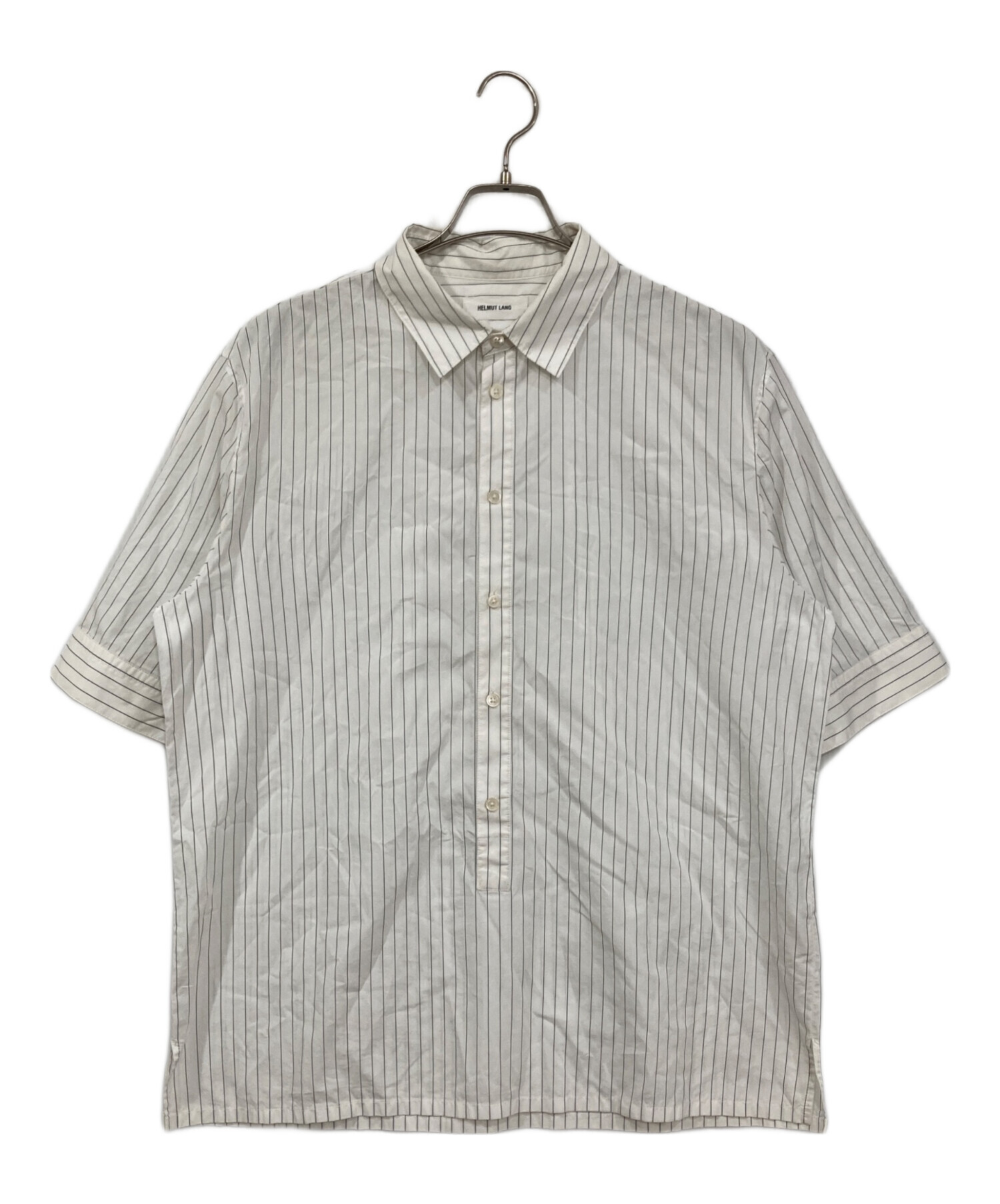 • HELMUT LANG(ヘルムートラング)HELMUT LANG (ヘルムートラング) 半袖ストライプシャツ ホワイト サイズ:Lの古着・服飾アイテム 袖口ヨゴレ有