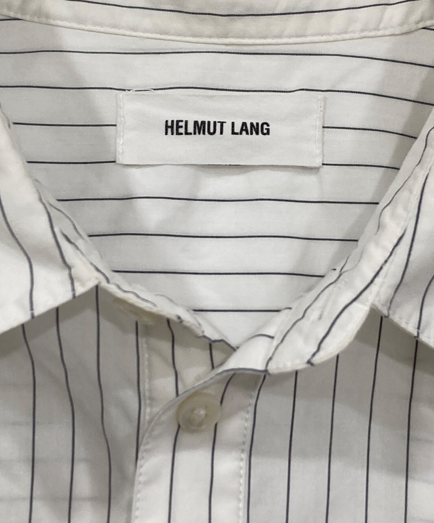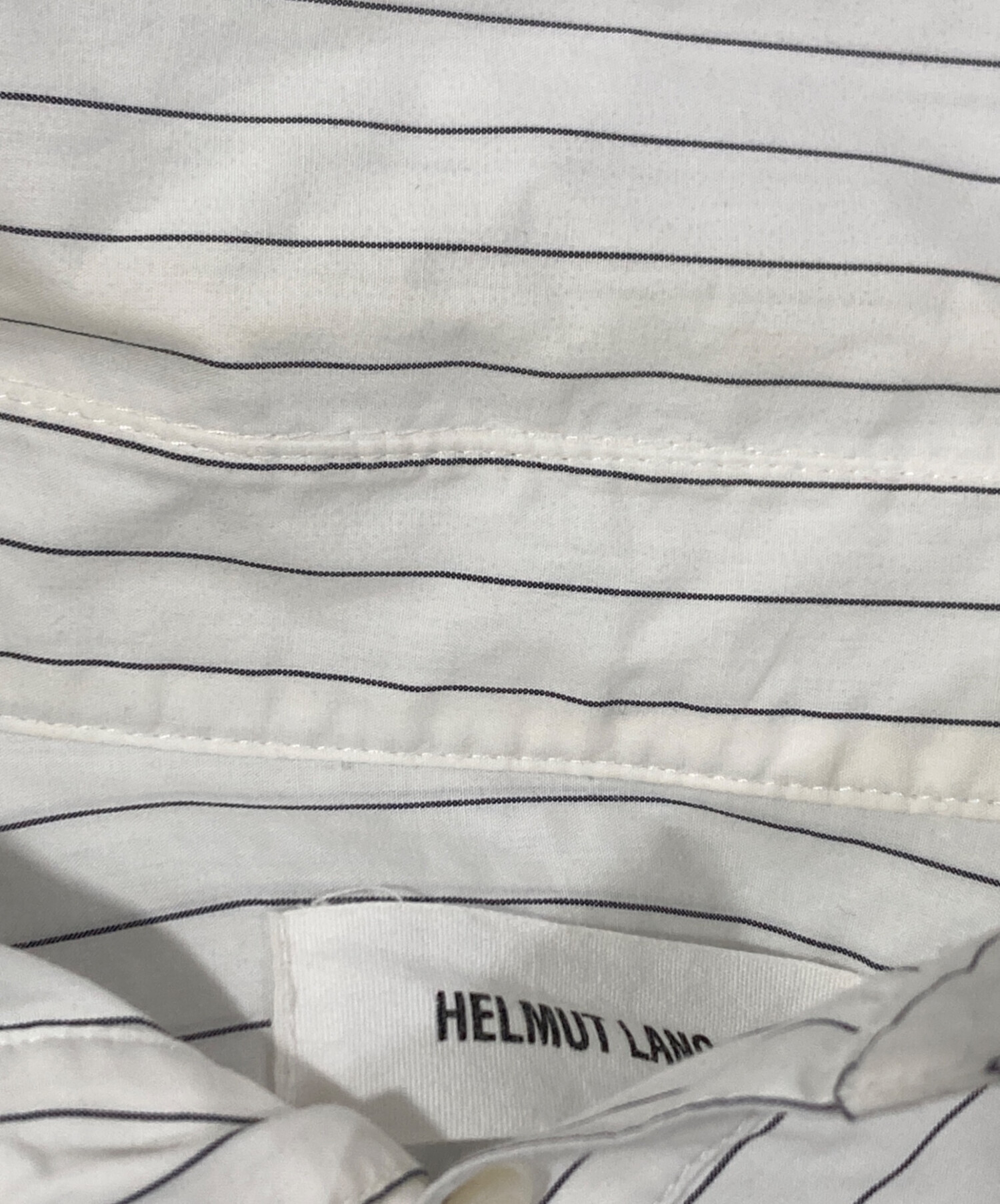 • HELMUT LANG(ヘルムートラング)HELMUT LANG (ヘルムートラング) 半袖ストライプシャツ ホワイト サイズ:Lの古着・服飾アイテム 襟ヨゴレ有