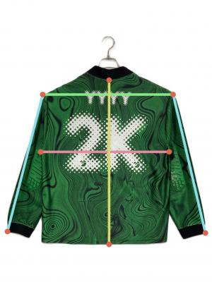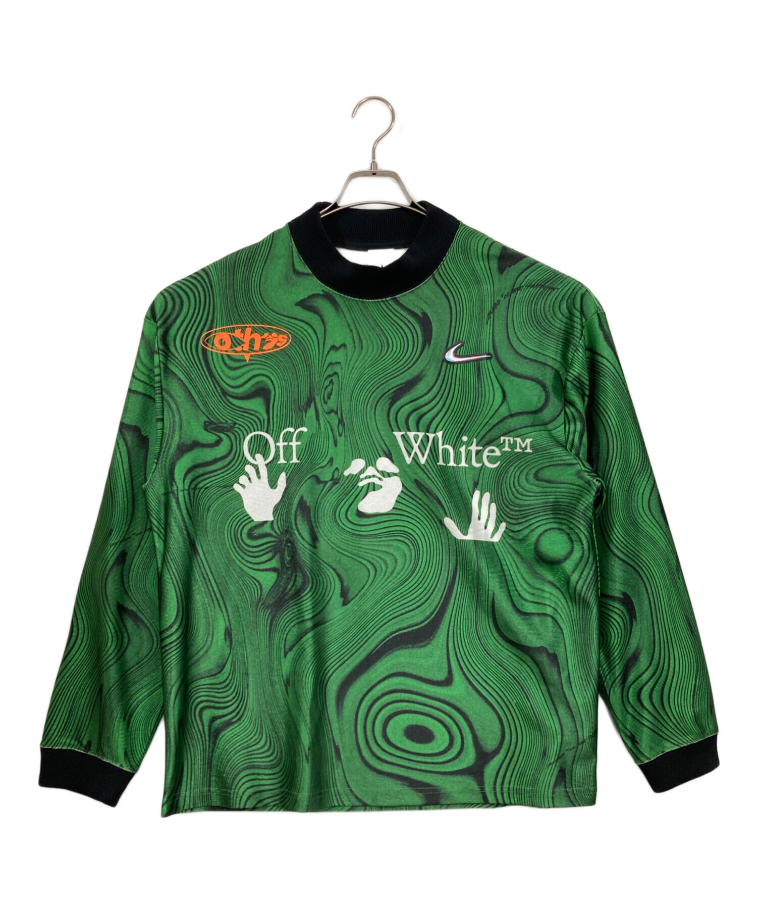 • NIKE(ナイキ)NIKE (ナイキ) OFFWHITE (オフホワイト) Allover Print Uniform ブラック×グリーン サイズ:Lの古着・服飾アイテム 襟内側ヨゴレ有