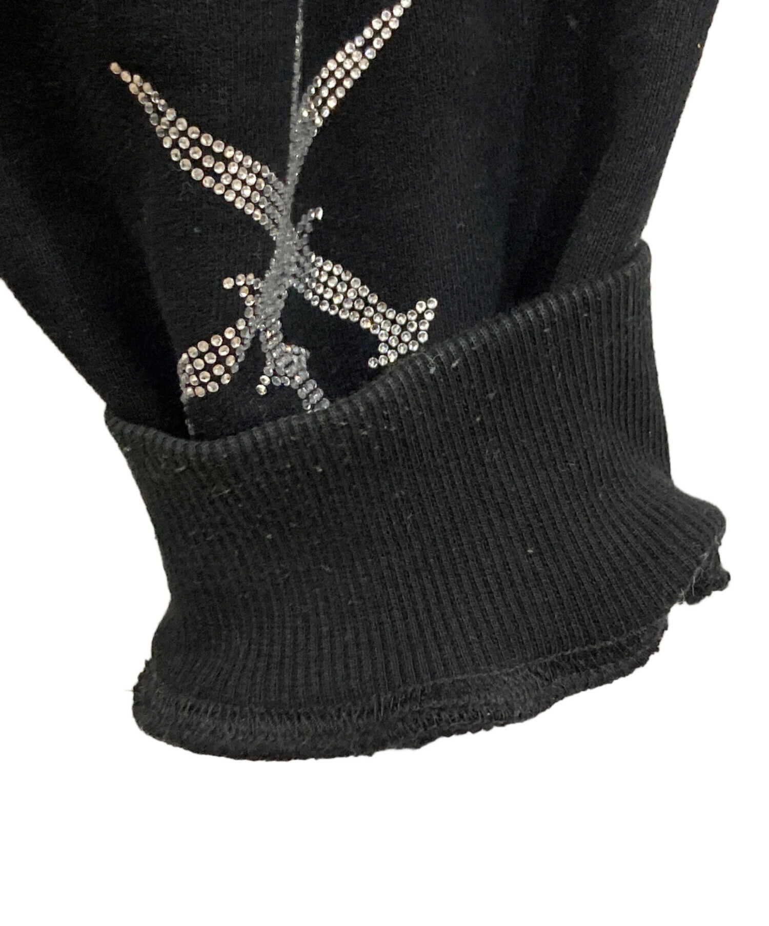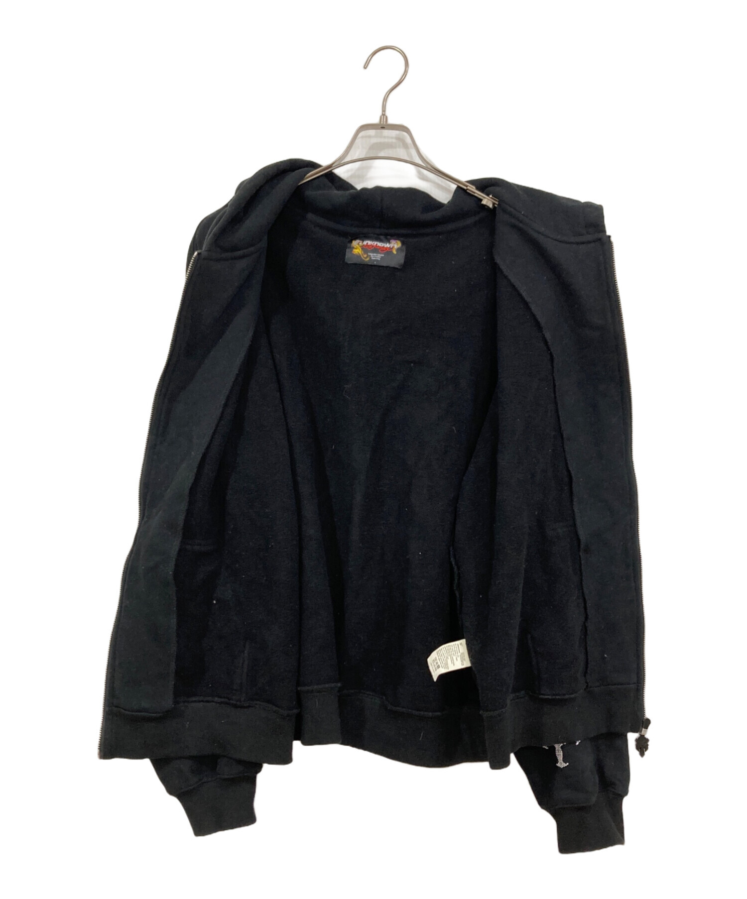 • unknown(アンノウン)Unknown (アンノウン) ED HARDY (エド ハーディー) ラインストーンジップパーカー ブラック サイズ:Lの古着・服飾アイテム ヨゴレ有