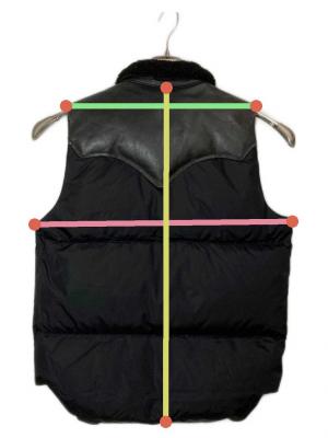 • RockyMountainFeatherBed(ロッキーマウンテンフェザーベッド)RockyMountainFeatherBed (ロッキーマウンテンフェザーベッド) レザーヨークボアダウンベスト ブラック サイズ:38の古着・服飾アイテム 背面スレ有