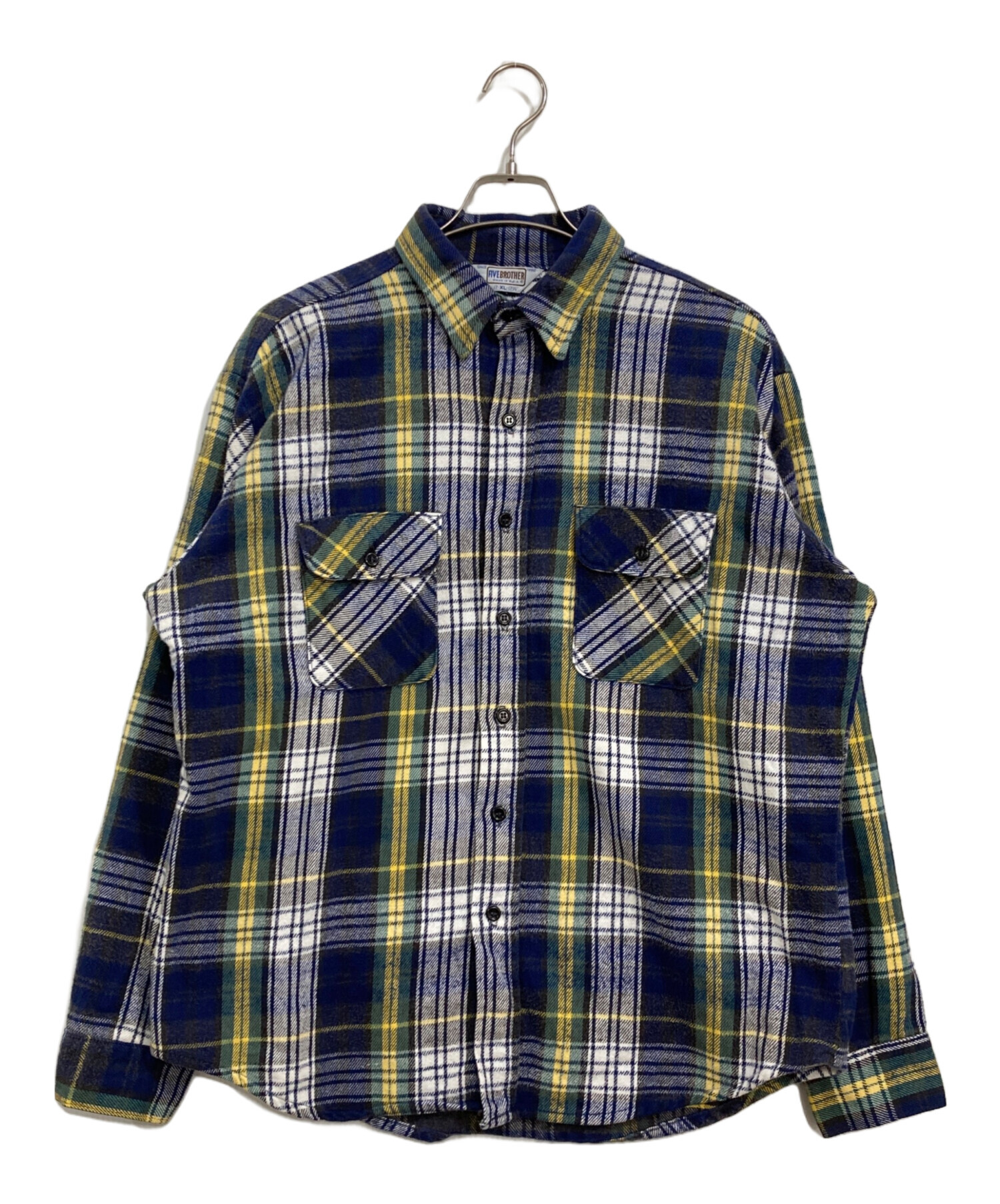 • FIVE BROTHER(ファイブブラザー)FIVE BROTHER (ファイブブラザー) 70~80'sネルシャツ ネイビー サイズ:XLの古着・服飾アイテム 袖口ホツレ有