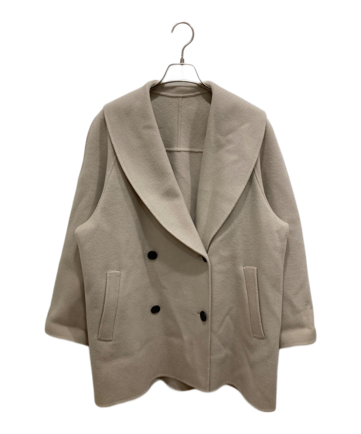 • allureville(アルアバイル)allureville (アルアバイル) カシミヤ混ショールカラーミドルコート ベージュ サイズ:Sの古着・服飾アイテム フロント部毛羽立ち