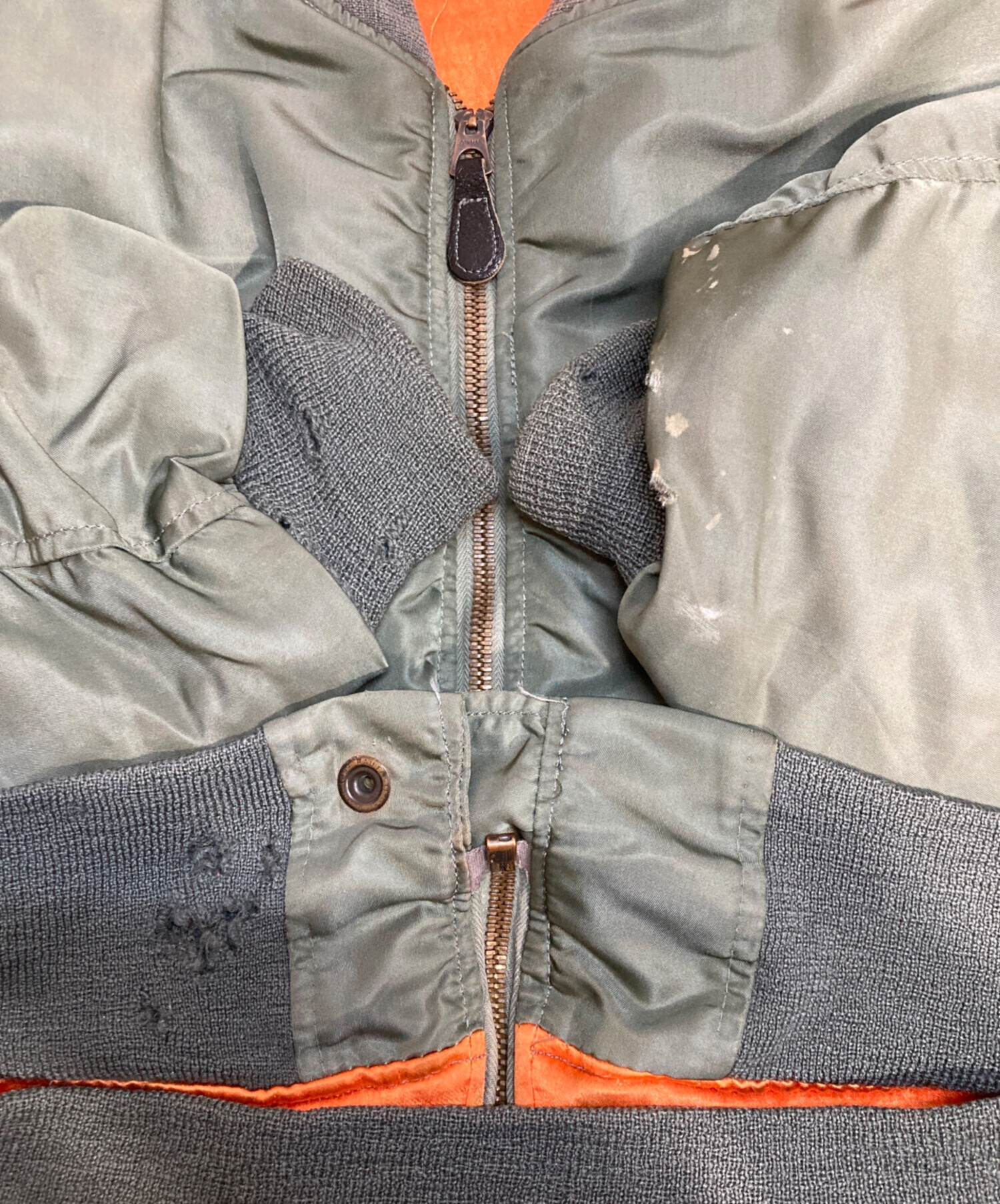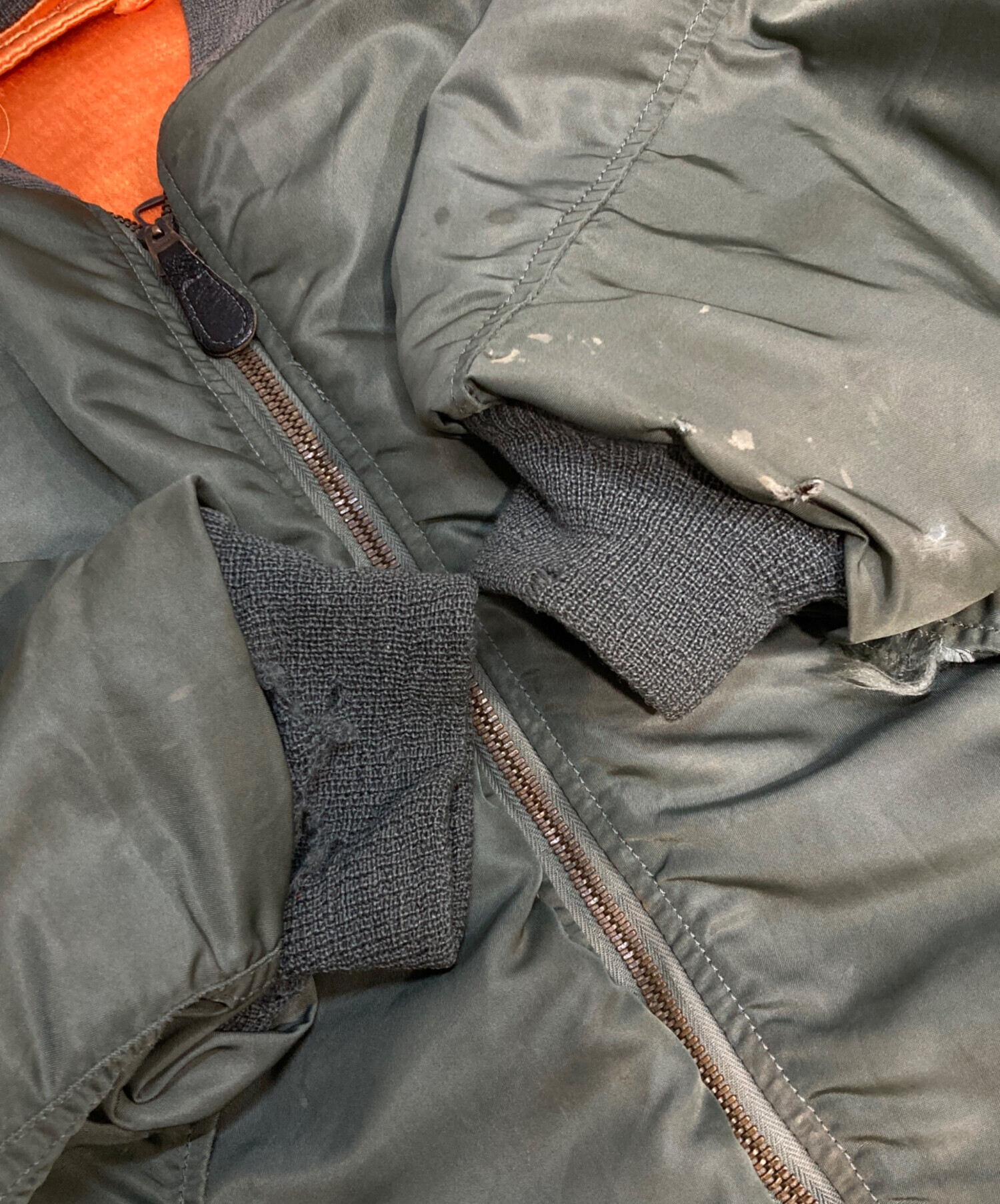 • US.AIR FORCE(ユーエスエアフォース)US.AIR FORCE (ユーエスエアフォース) L2-Bフライトジャケット カーキ サイズ:Mの古着・服飾アイテム 袖口ダメージ/ヨゴレ