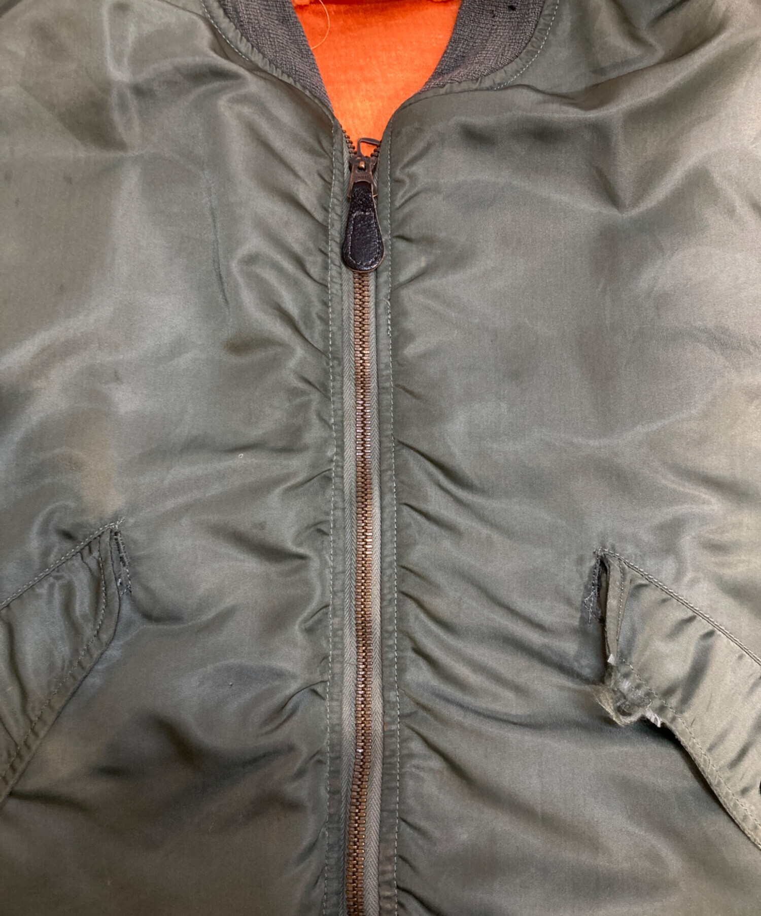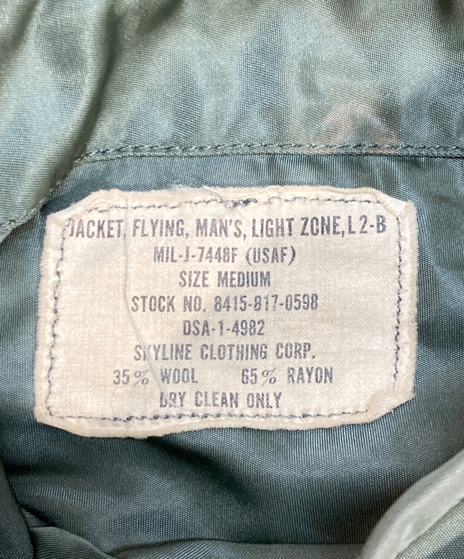 • US.AIR FORCE(ユーエスエアフォース)US.AIR FORCE (ユーエスエアフォース) L2-Bフライトジャケット カーキ サイズ:Mの古着・服飾アイテム フロント部ヨゴレ